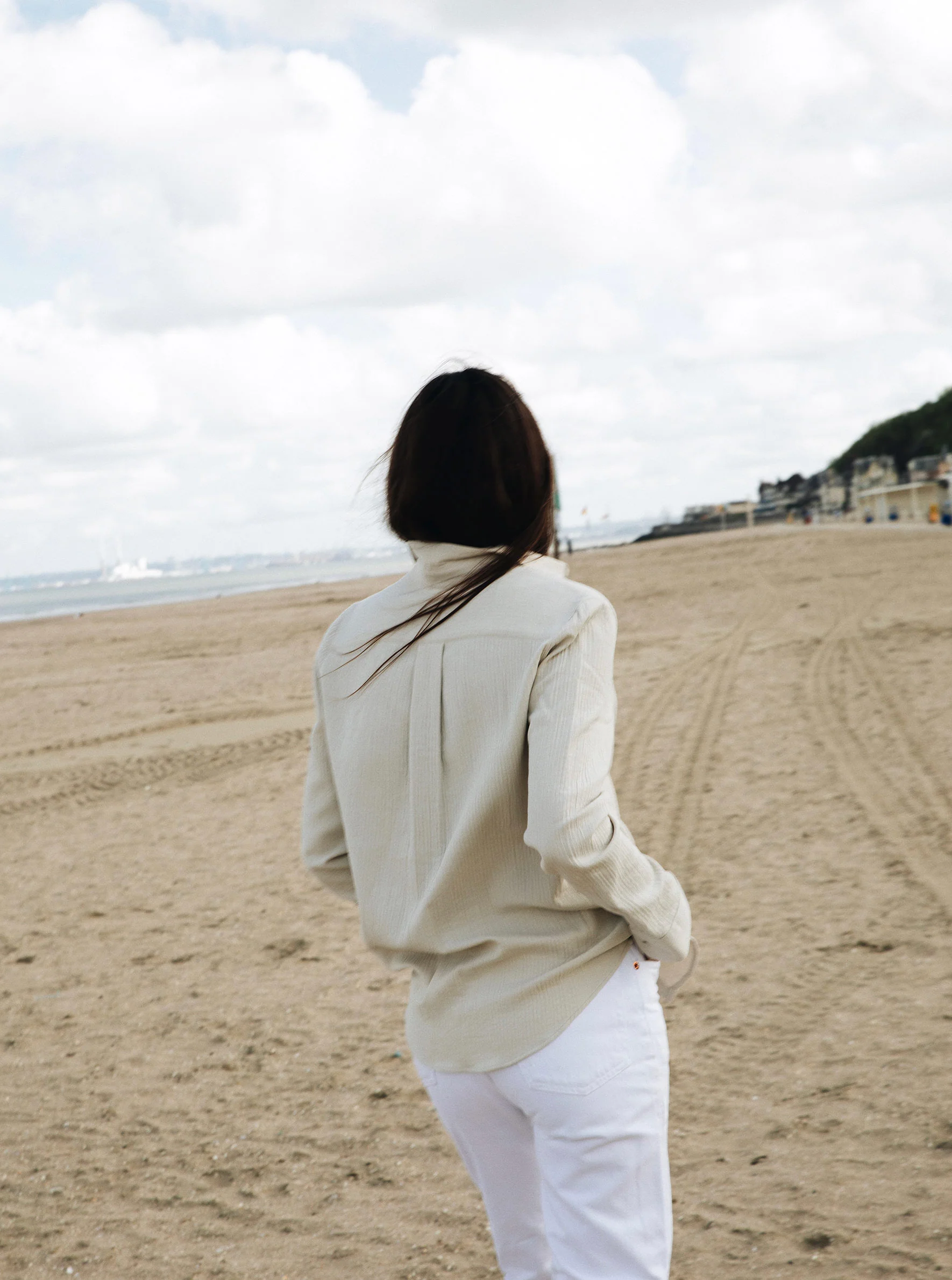 La chemise Ada est réalisée en 100% gaze de coton douce, plus épaisse que nos autres chemises. Elle offre une texture douce et chaleureuse, idéale pour la mi-saison. Sa coupe droite légèrement oversize dessine une silhouette décontractée, élégante et facile à porter. Polyvalente, elle peut aussi se porter en surchemise. Détails soignés :• Coupe droite […]