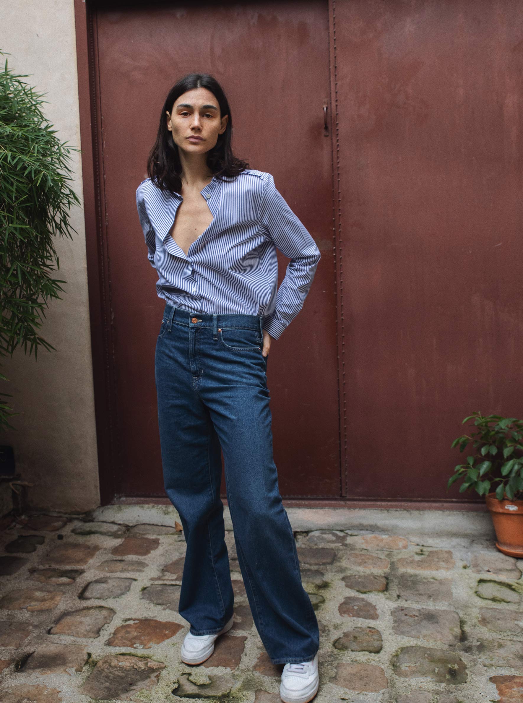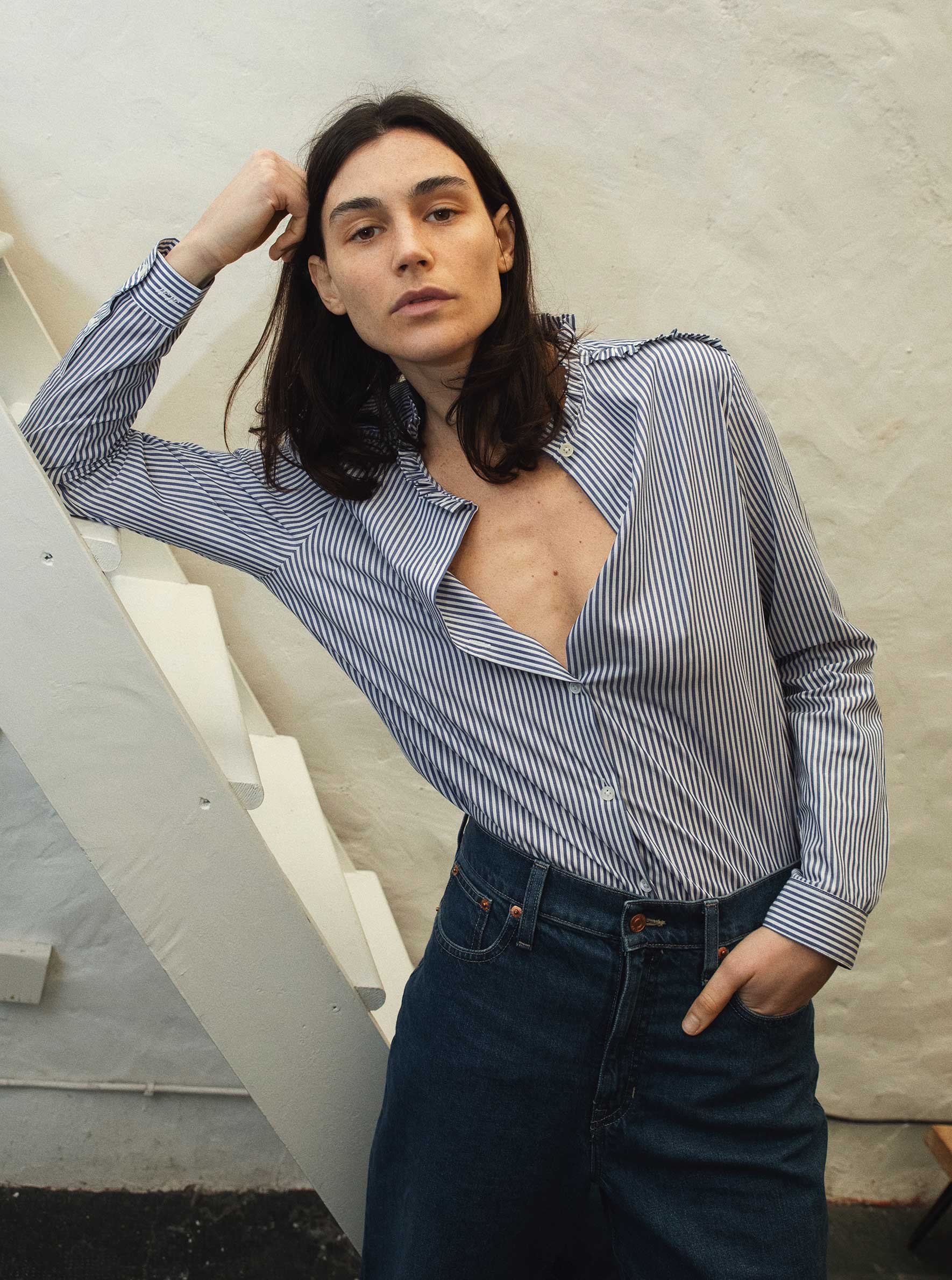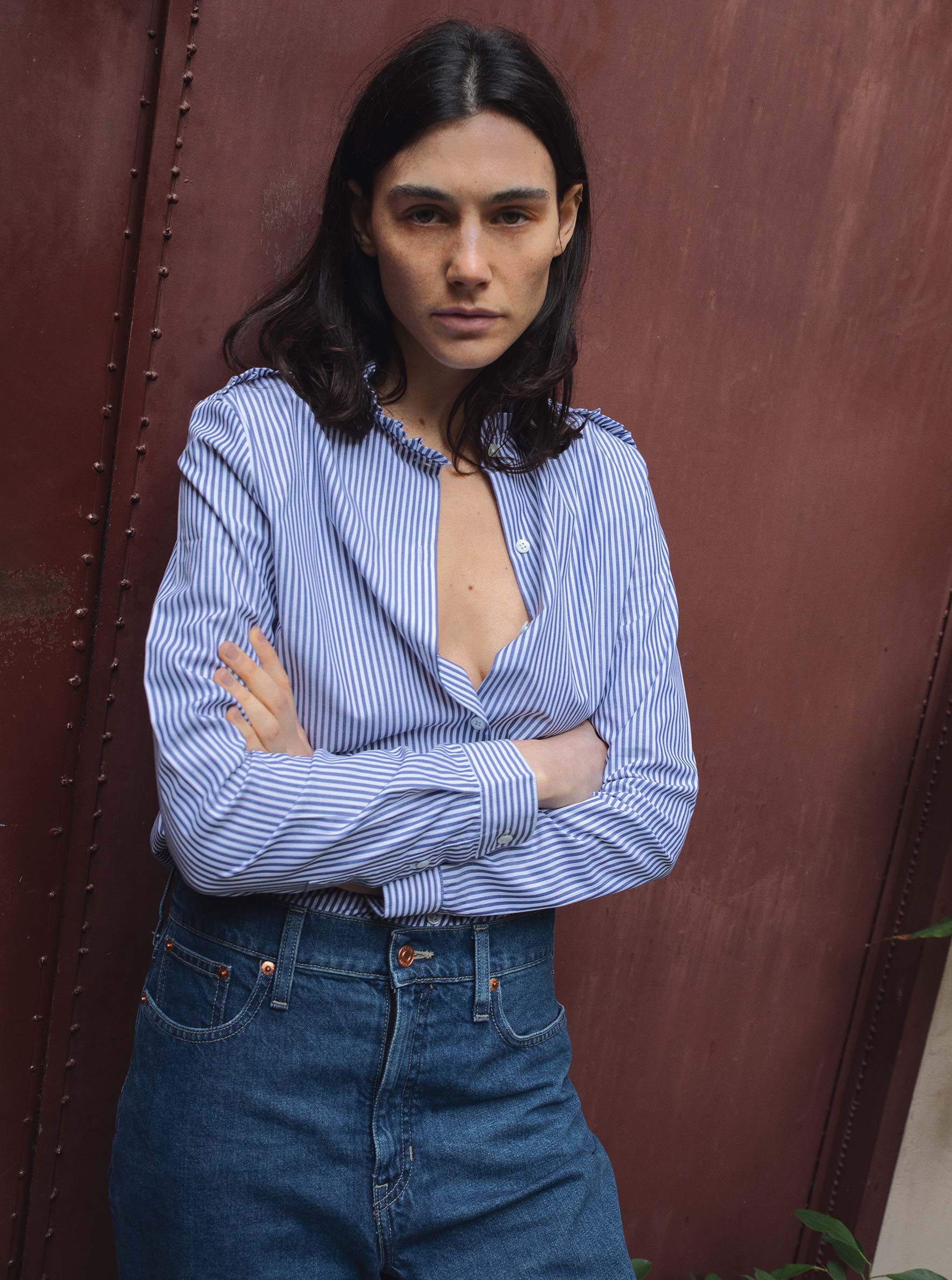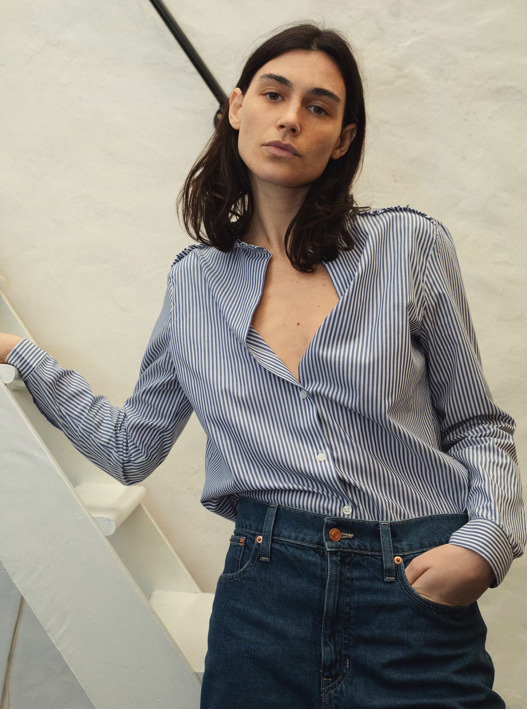Notre modèle iconique est de retour! Chemise coupe droite légèrement oversize Col et épaules à volants Composition 100% coton – Lavage en machine à 30°C Esther porte une taille S (4/6 US)