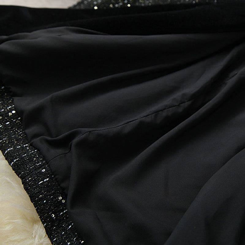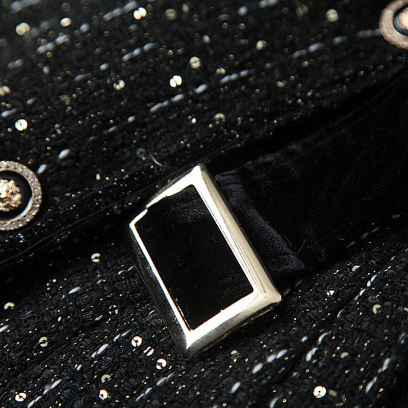 Très joli manteau en lainage noir brillant, avec une belle longueur. Col tailleur avec partie du bas en velours noir. Double boutonnage devant et ceinture à boucle à la taille. L’hiver peut se profiler tranquillement à l’horizon.