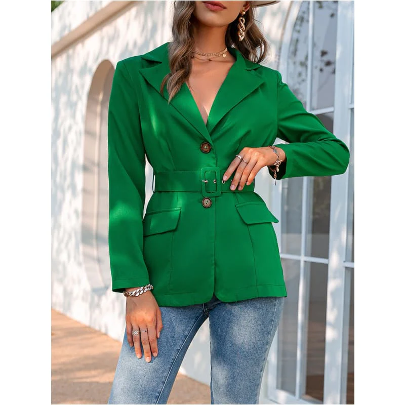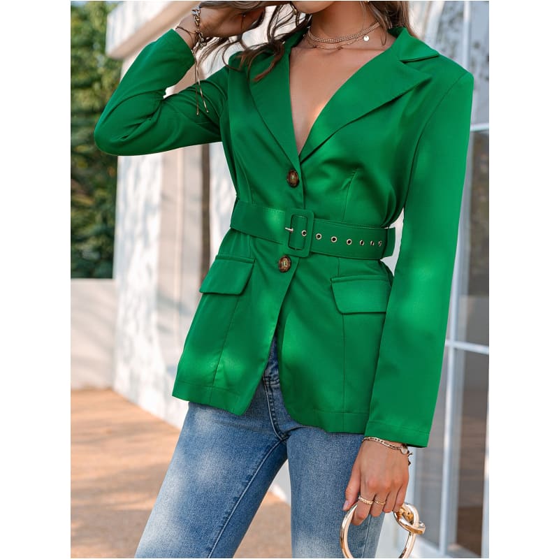 Grâce à sa couleur verte flash, ce blazer est déjà une pièce unique. Avec ses pinces de cintrage pour que le blazer s’ajuste au mieux sur votre corps, son col tailleur, ses poches à rabat et sa ceinture, cette pièce de votre dressing sera votre vêtement préféré.
