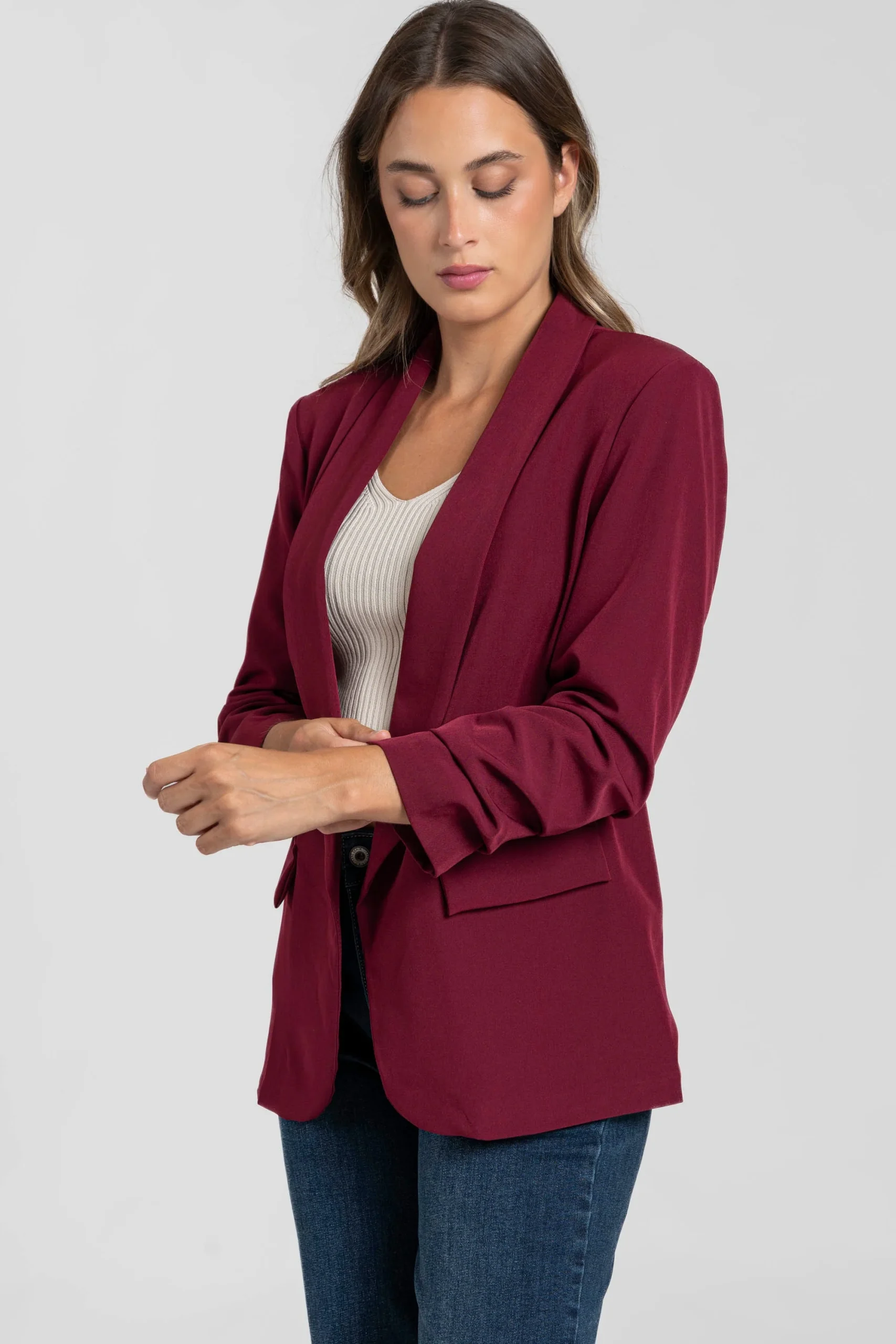 Blazer femme manches froncées pour bureau et occasions habillées
