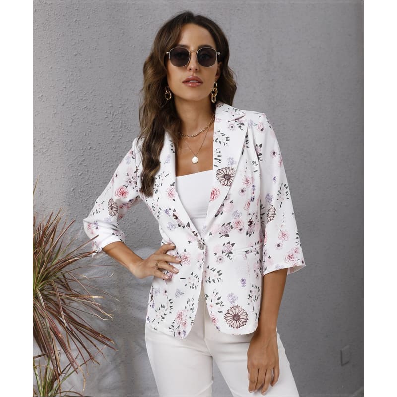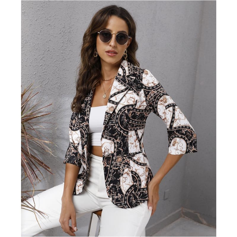 Beaux choix de motifs pour ces blazers cintrés. Col tailleur, manches trois quarts, boutonnage à l’avant et poches passepoilées. Une veste festive !