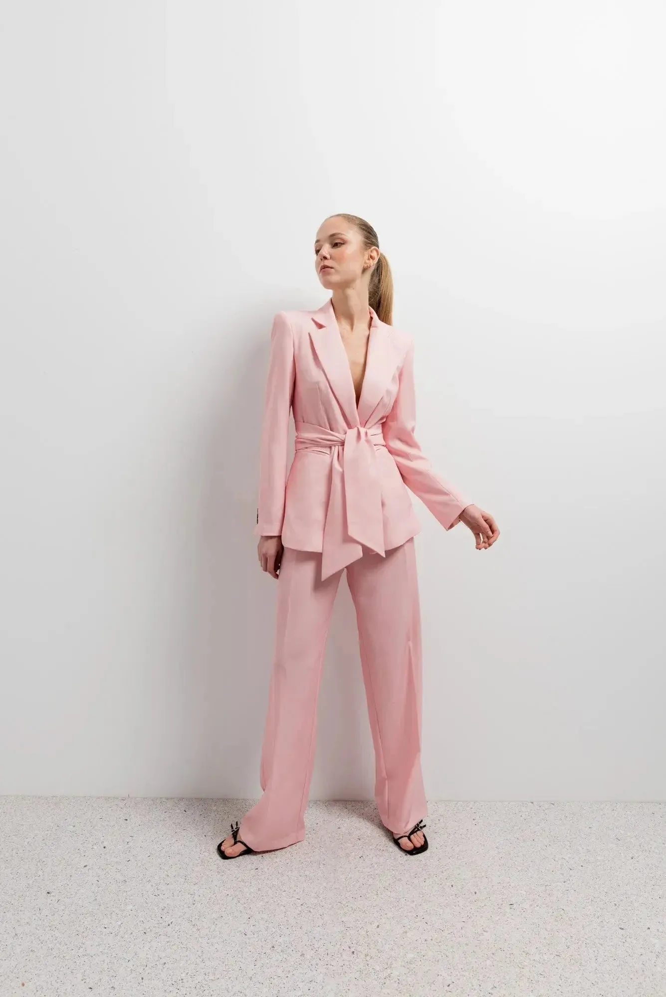 Blazer rose ceinturé élégant