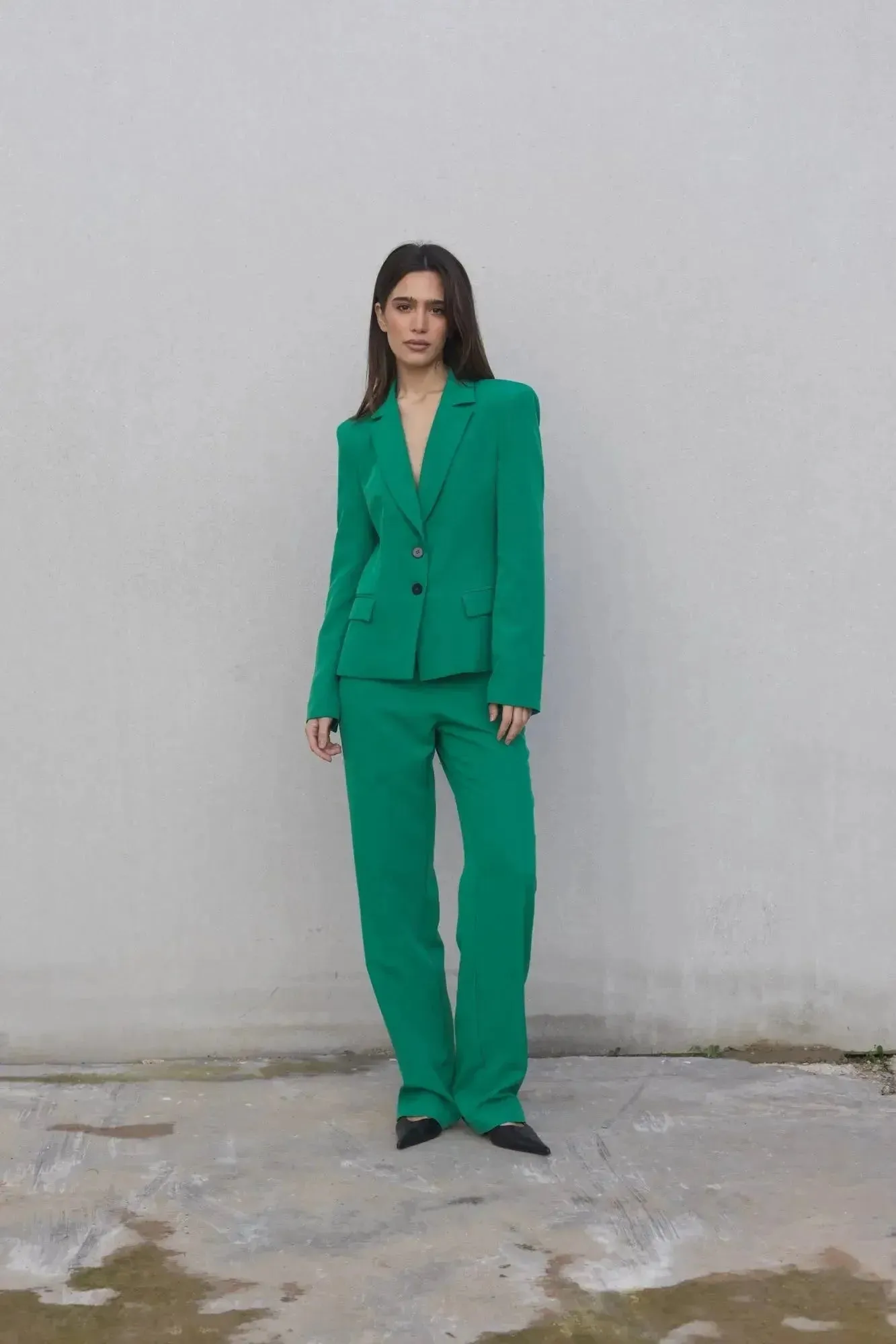 Blazer tailleur ajusté vert émeraude – pièce de costume