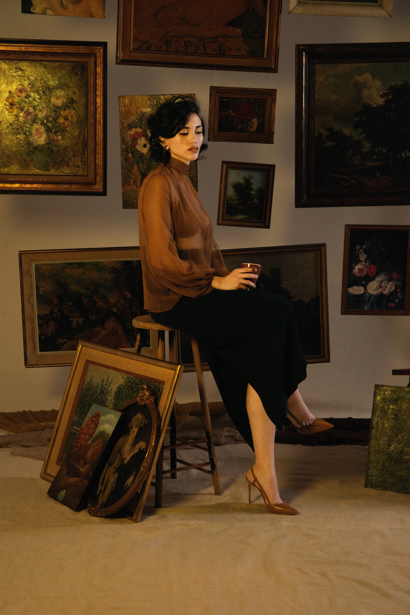 Blouse en Mousseline de Soie Marron – Santal :
