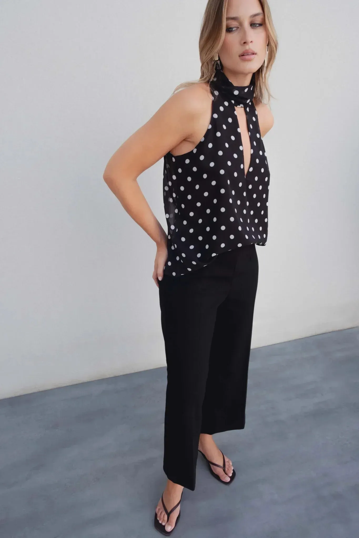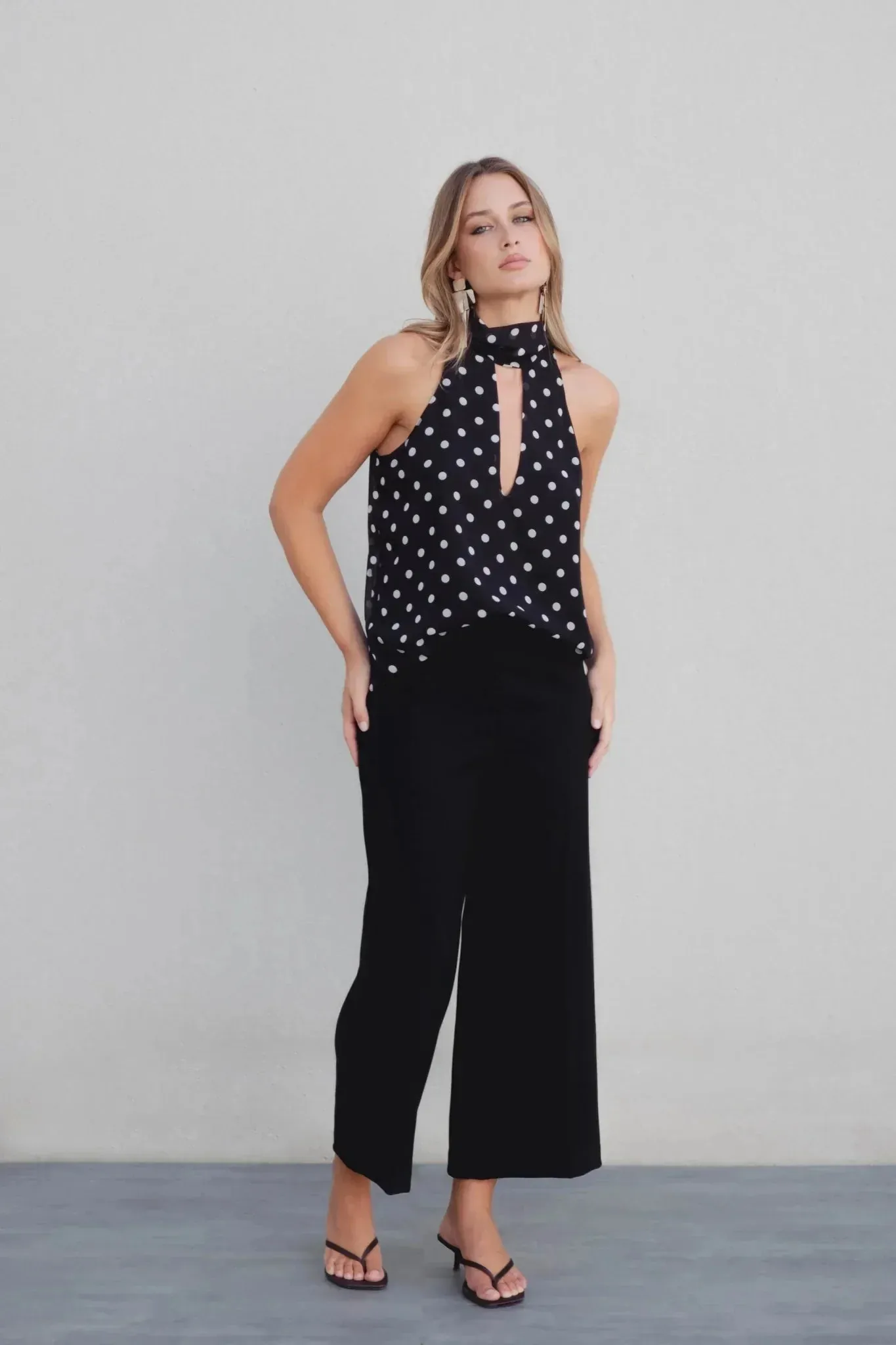 - Imprimé : pois blancs sur fond noir, classique et élégant