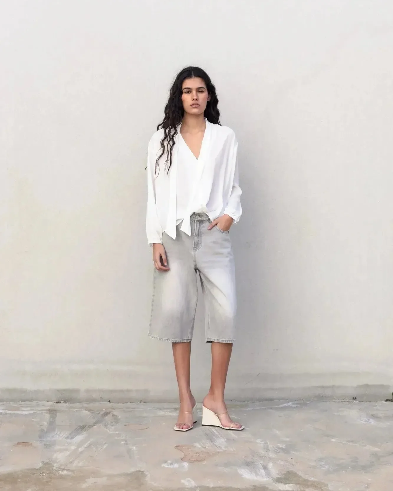 🎯 Conseil de style : Pour un look professionnel, associez la blouse avec un blazer ajusté et des escarpins. Si vous cherchez une tenue plus décontractée, un short en jean fera parfaitement l’affaire. N’oubliez pas d’ajouter des accessoires dorés pour une sophistication supplémentaire !