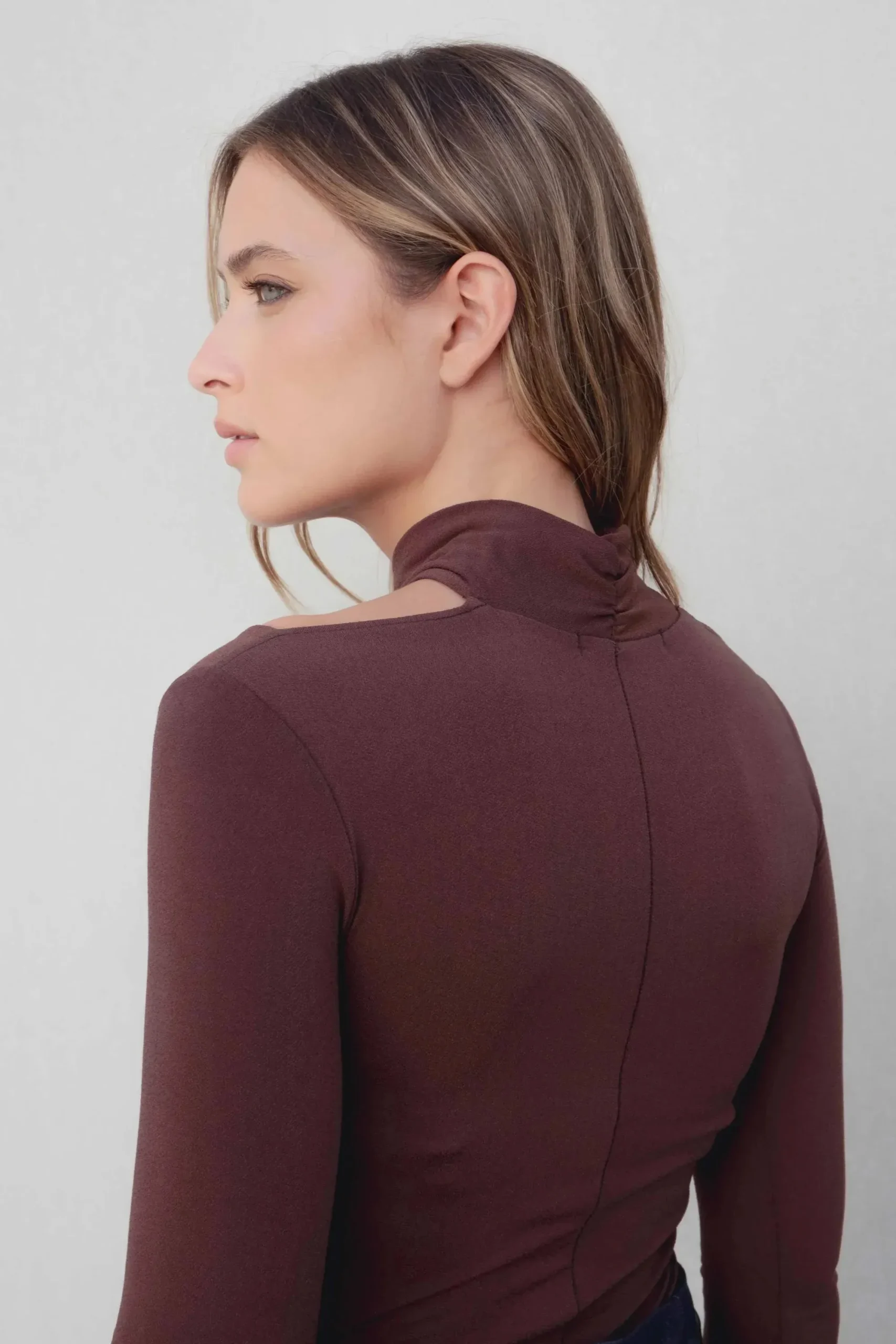 Découvrez le body manche longue femme drapé marron