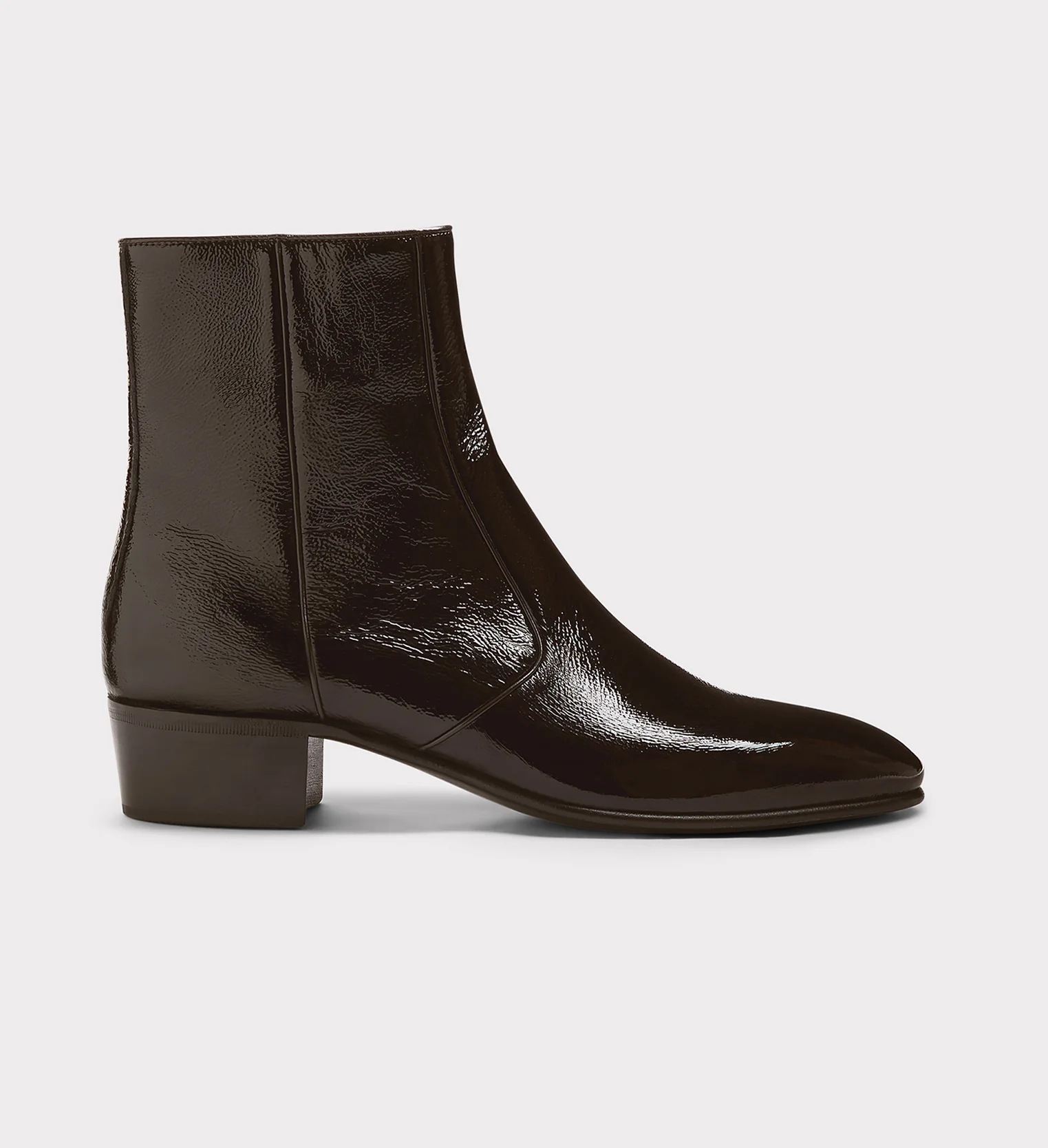 Bottines zippées en cuir de veau verni craquelé italien.