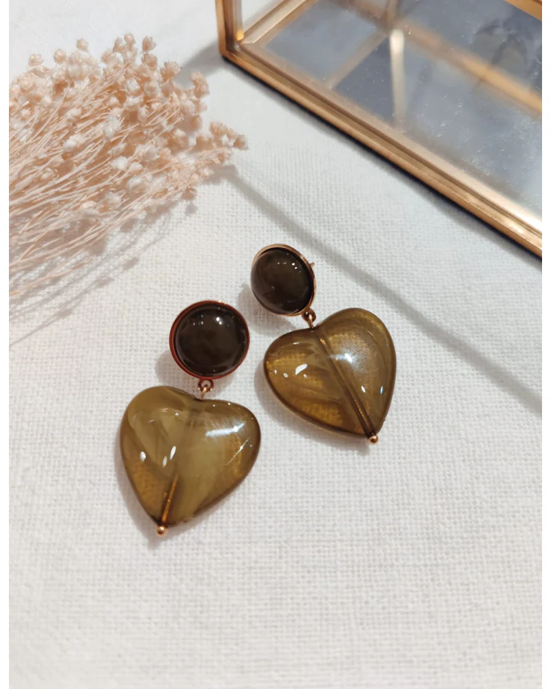 Boucles d’oreilles cœur – Résine colorée et acier doré