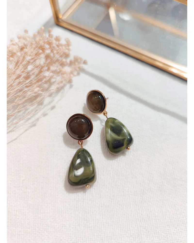 Boucles d’oreilles galet – Résine colorée et acier doré