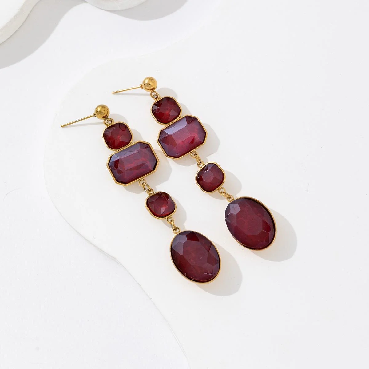 Ces boucles associent une monture dorée en acier inoxydable à plusieurs pierres facettées de formes variées (rondes, rectangulaires, ovales). Leur structure allongée apporte du mouvement et de l’élégance à votre silhouette. L’acier inoxydable leur assure une longue durée de vie : hypoallergéniques, résistantes à l’eau et à l’oxydation, elles conservent tout leur éclat au fil du temps.