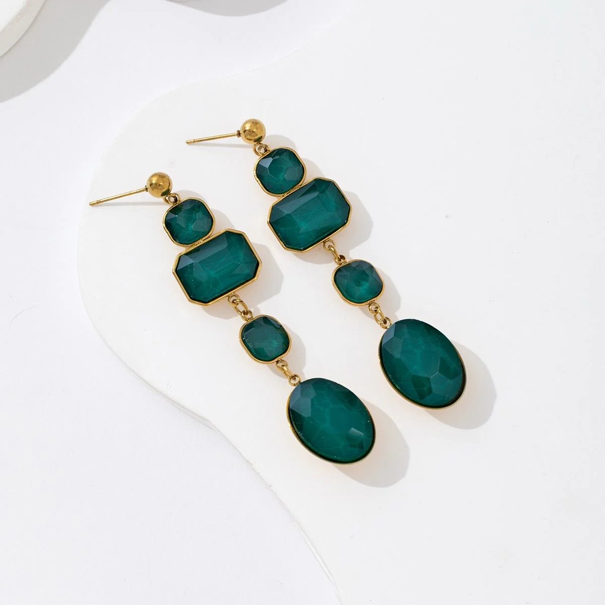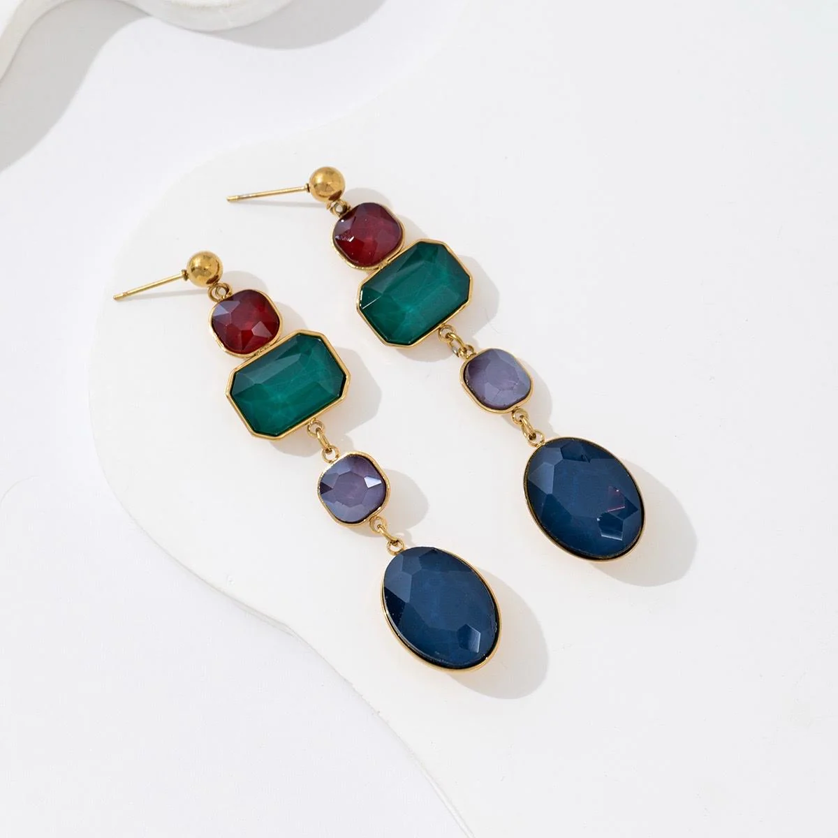 Boucles d’oreilles pendantes en acier inoxydable avec pierres colorées
