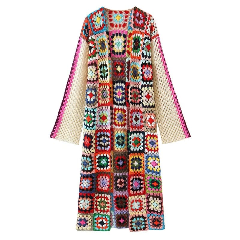 Magnifique cardigan à manches longues dans un coloris multicouleurs. Avec un joli dessin dans la maille qui représente des rosaces. Les deux parties avant de ce haut tombent à leurs convenances. Pour le plaisir des petits moments où vous aimez être au chaud !
