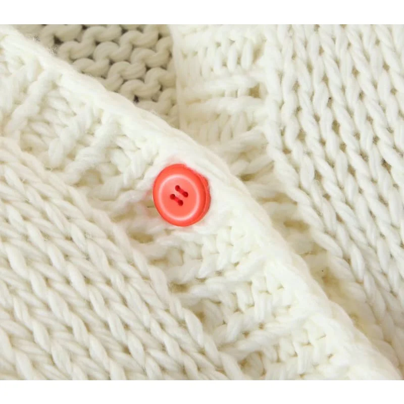 Très beau cardigan beige avec des motifs en reliefs en forme d’orange. Avec de longues manches et un boutonnage de couleur orange également et une encolure en V. Pour des soirées bien au chaud ! Type d’article : cardigan Épaisseur : moyenne Matériel : polyester/coton Longueur : normale Coupe : évasée Style : chic Il […]