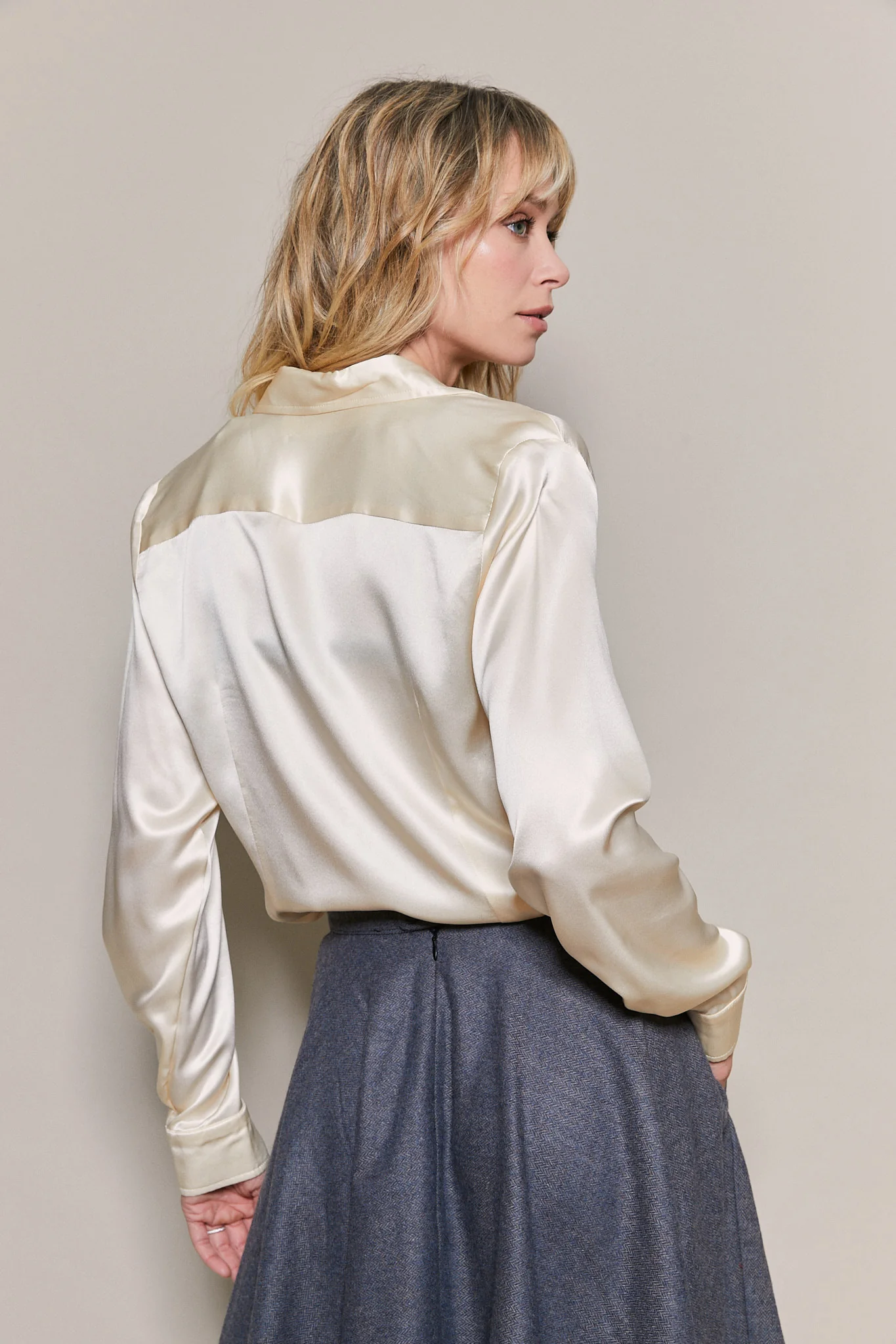Élégance intemporelle et confort luxueux se rencontrent dans notre chemisier Alice en soie ivoire. Parfait pour la femme moderne cherchant à allier raffinement et simplicité, ce chemisier se distingue par sa couleur douce et lumineuse qui éclaire le teint. Sa coupe classique et ses finitions soignées en font une pièce indispensable pour toute occasion. La soie de haute qualité assure une douceur exceptionnelle et une fluidité agréable au porter.