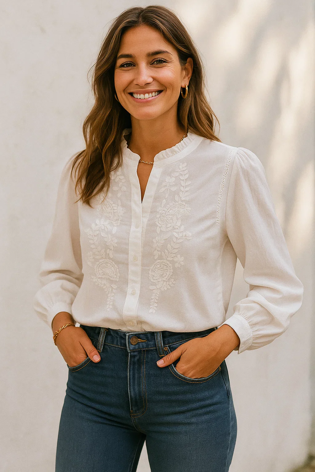 Chemise blanche brodée – féminine, raffinée et 100 % coton
