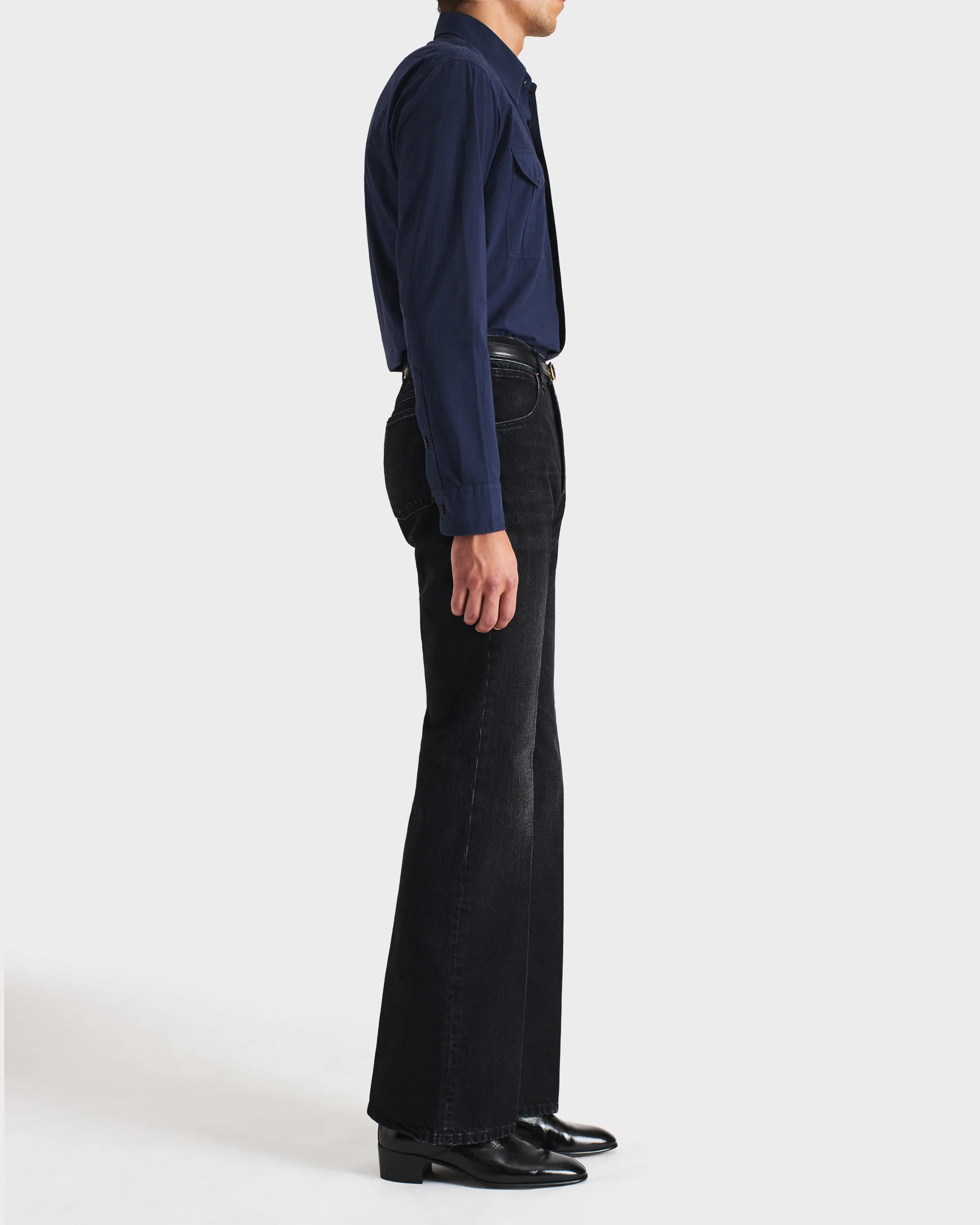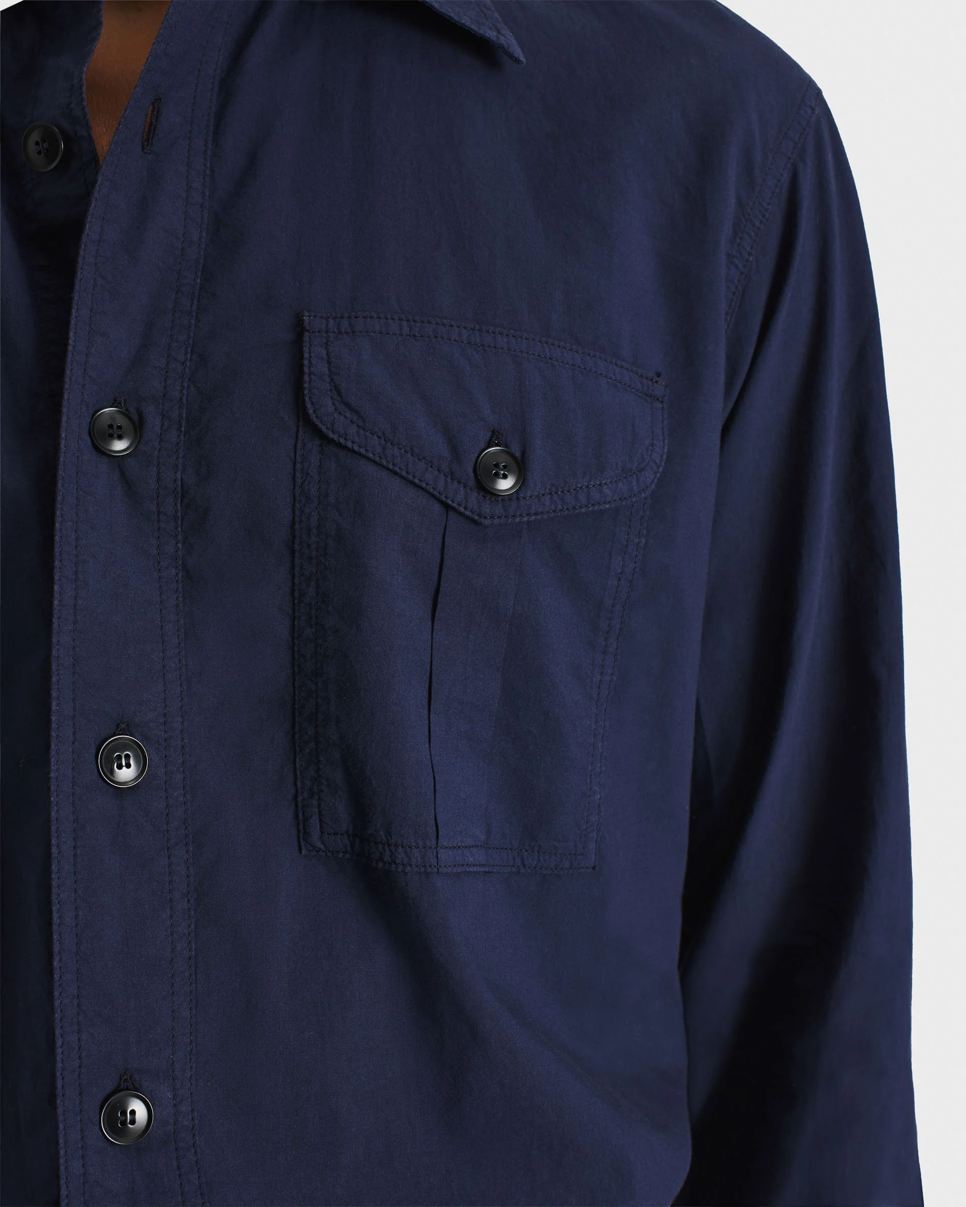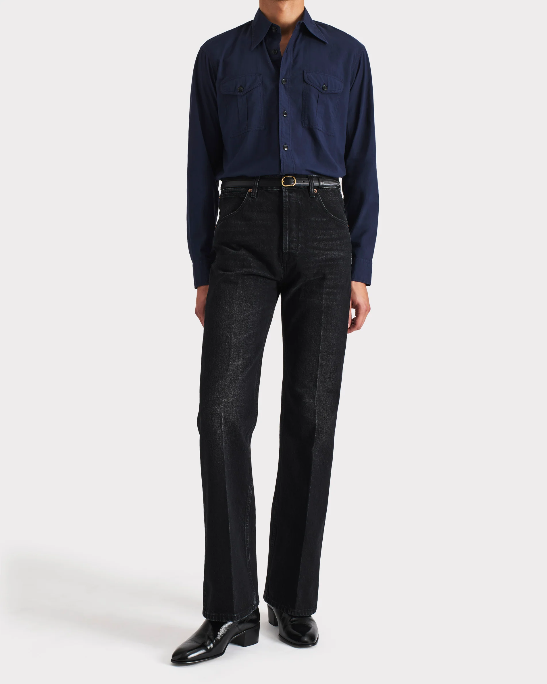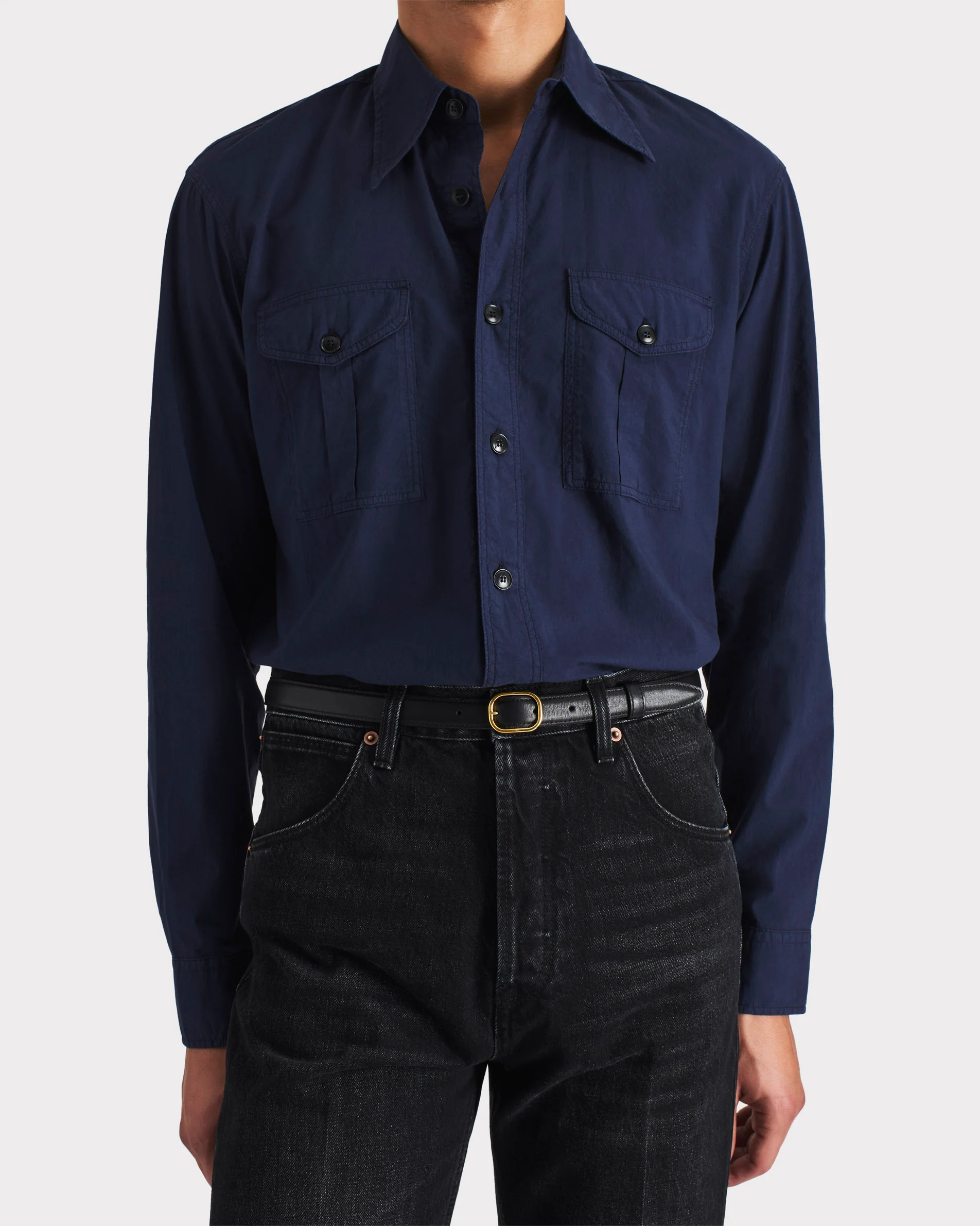 Chemise boyscout col classique, coupe évasée, en popeline de coton japonais teint en pièce.