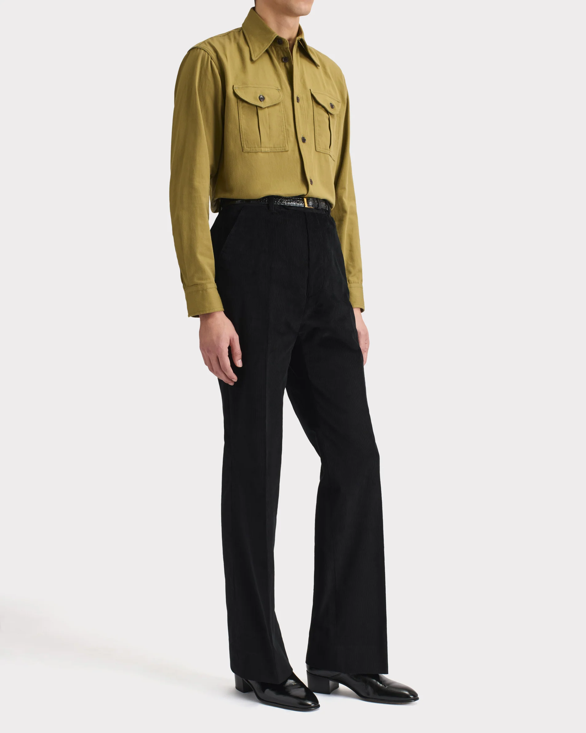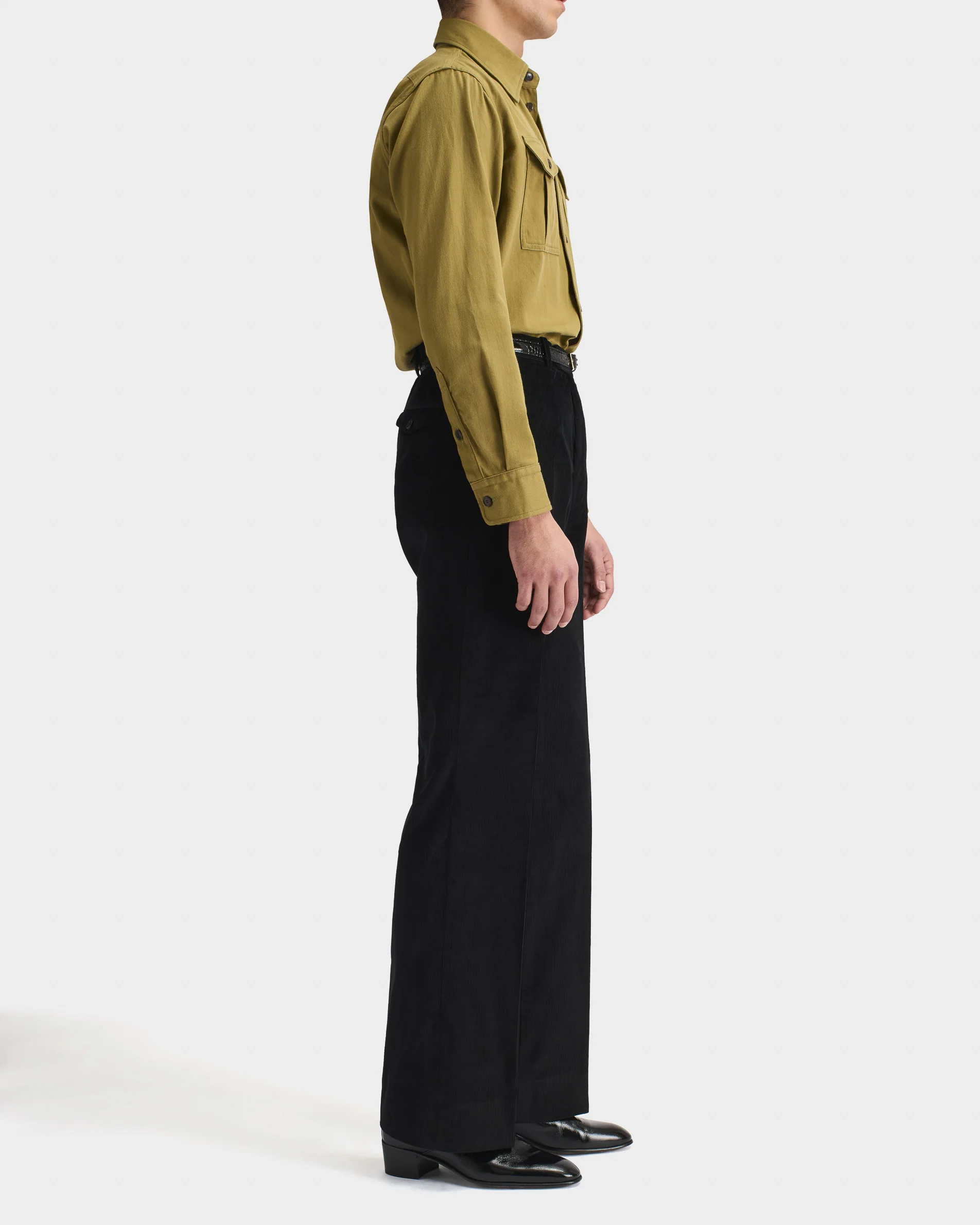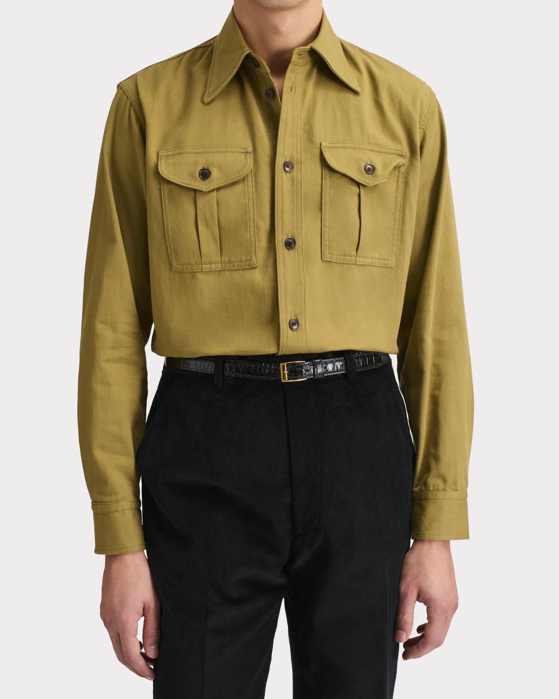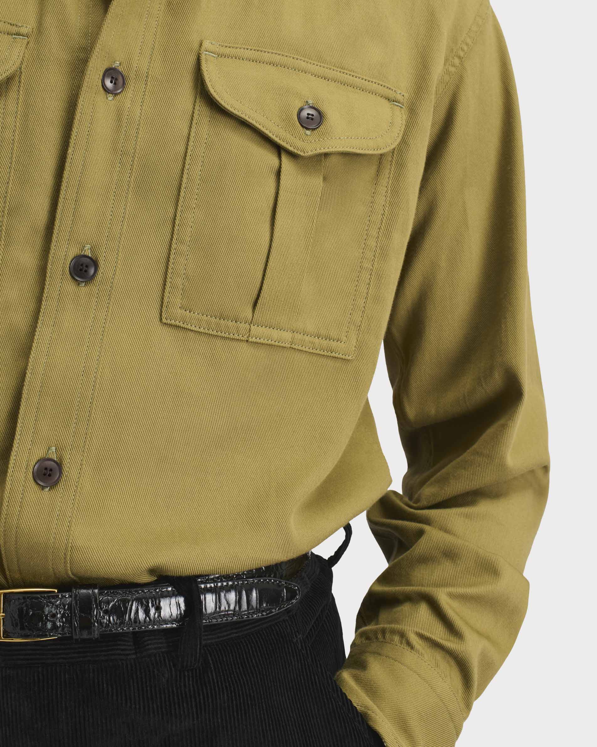 Chemise boyscout col classique, coupe évasée, en sergé de coton japonais.