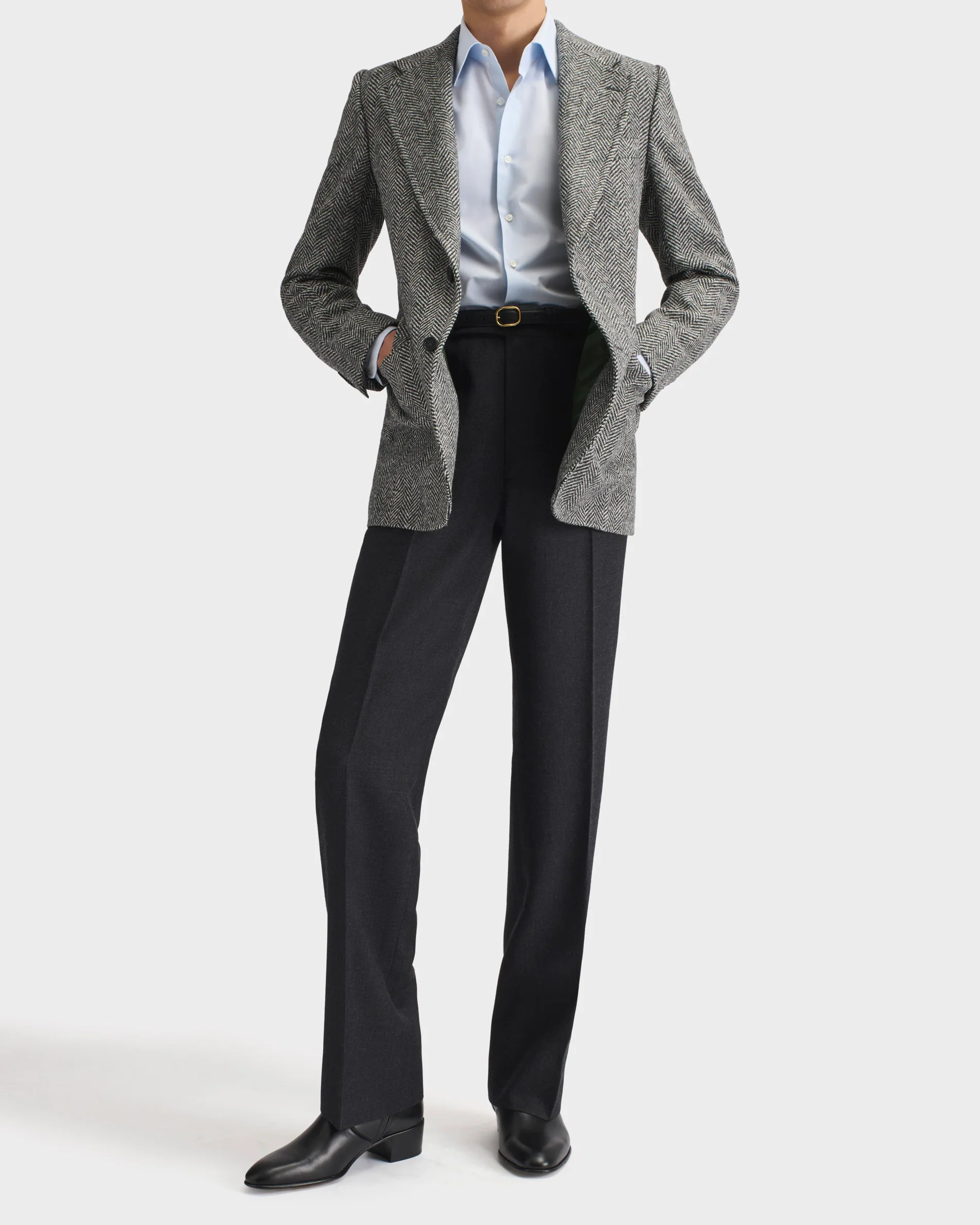 Chemise col classique, coupe classique, en popeline de coton anglais.