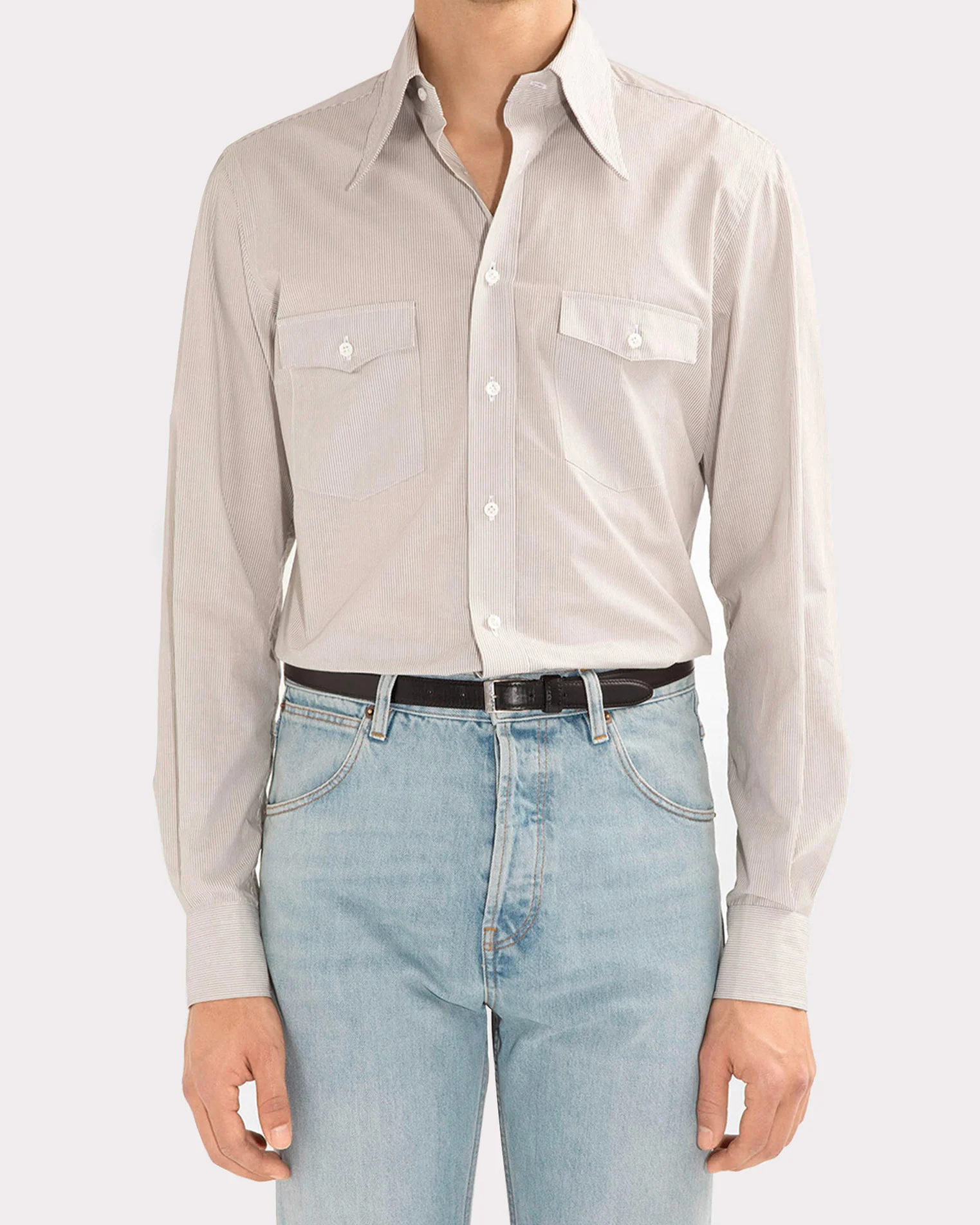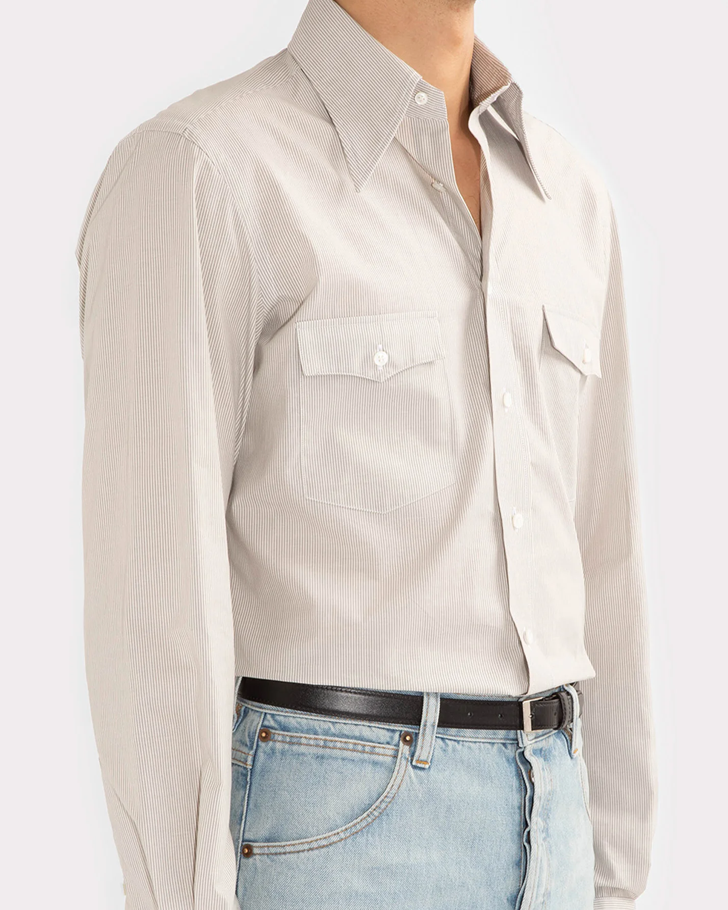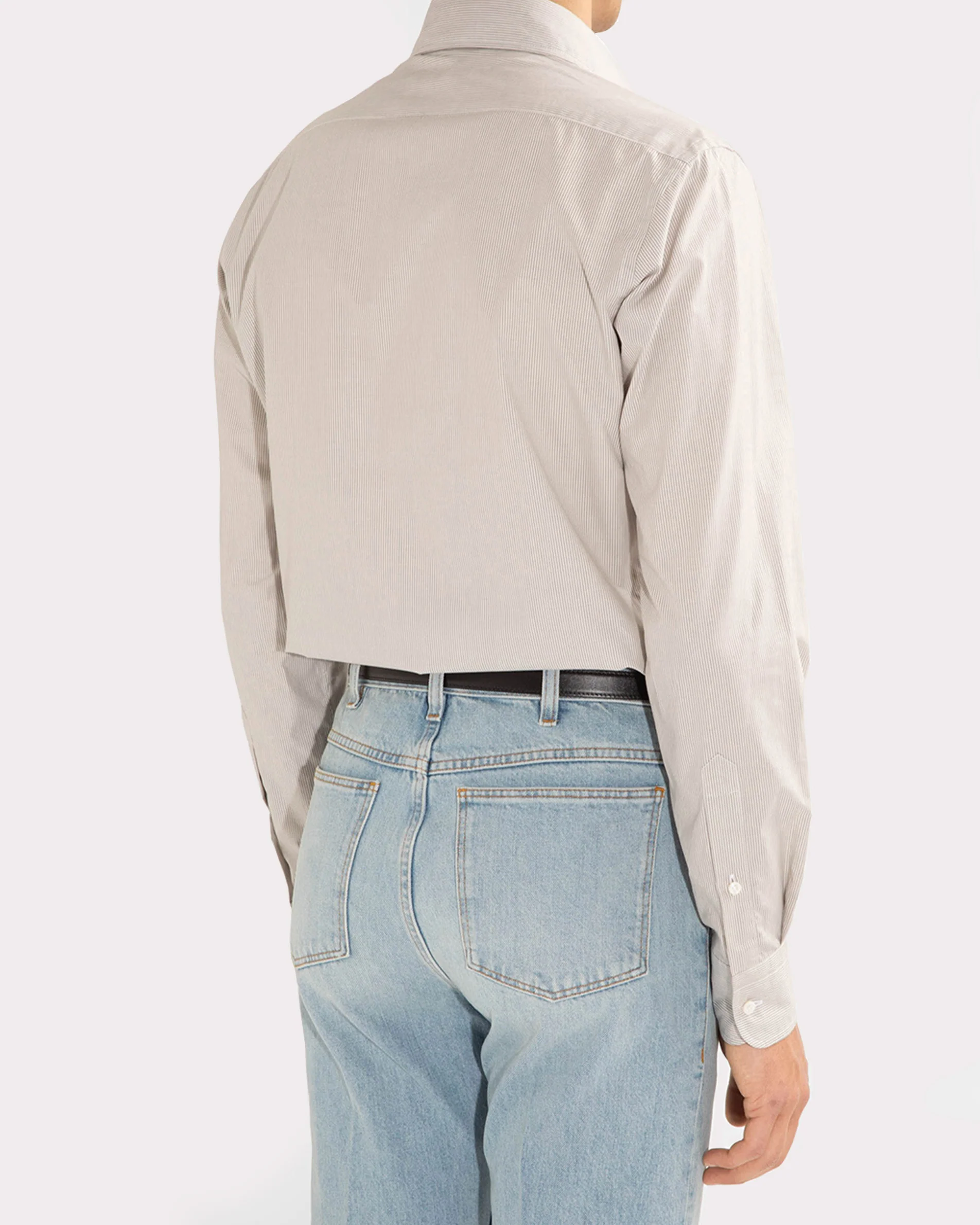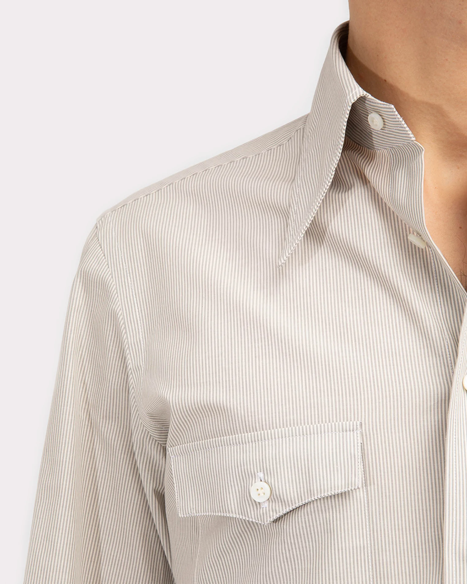 CHEMISE COL LARGE EN POPELINE DE COTON – RAYURES GRISES ET BLANCHES