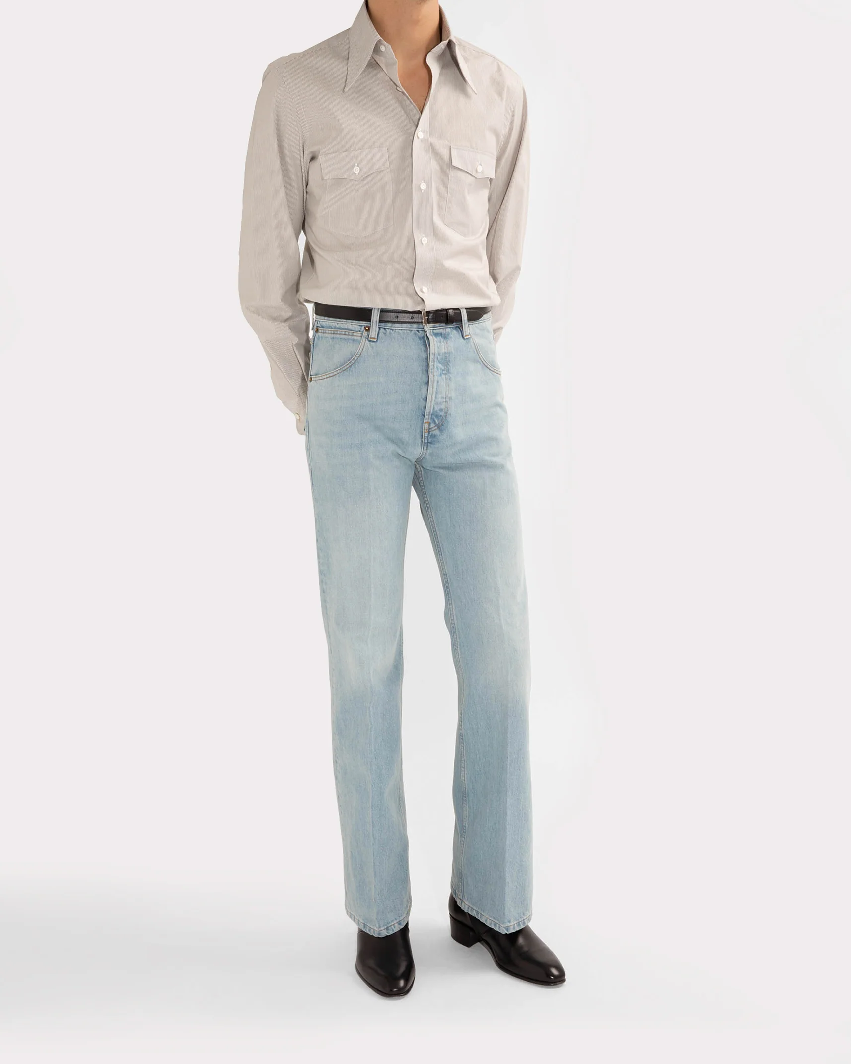 Chemise col large, coupe classique, popeline de coton japonais.