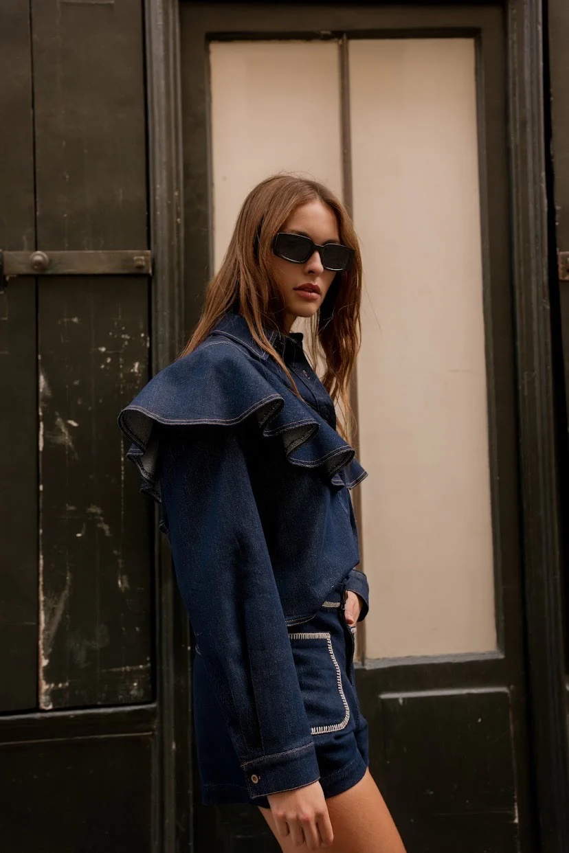 Parfaite pour un look casual chic, cette chemise en coton s’associe facilement à un short en denim assorti ou à un jean taille haute. Elle peut également être glissée sous une veste pour un rendu plus structuré. Ses finitions soignées et son design affirmé en font une pièce forte de la garde-robe féminine.