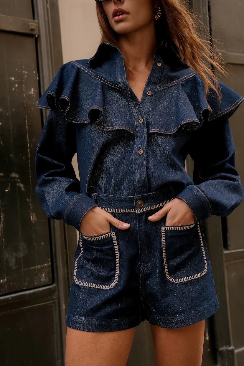 Alliez féminité et modernité avec cette chemise en coton à volants, disponible en tailles S/M et M/L. Inspirée du style bohème chic, elle revisite la chemise classique en version audacieuse et élégante.