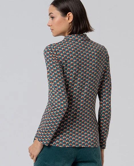 Cette chemise se distingue par son col classique, sa patte de boutonnage discrète et sa coupe ajustée qui élance la silhouette. Son motif graphique coloré apporte une touche originale et bohème chic, typique de la marque Surkana.