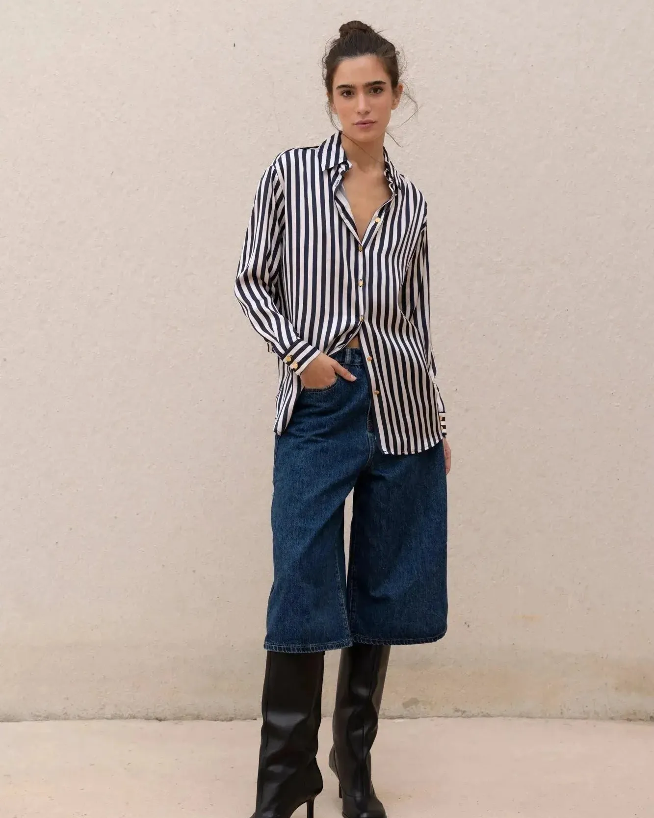- Portez-la avec un jean droit ou flare pour un look décontracté chic.