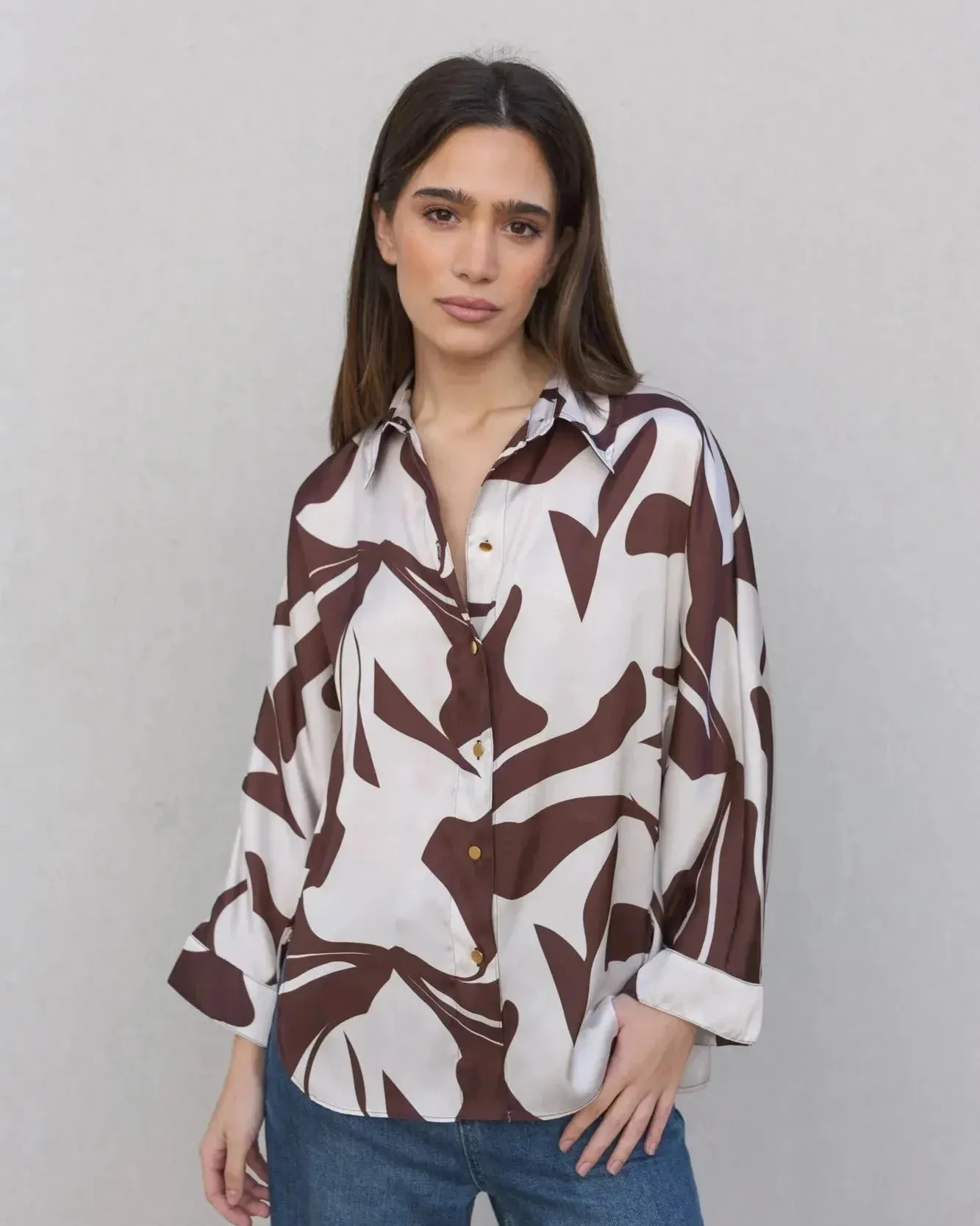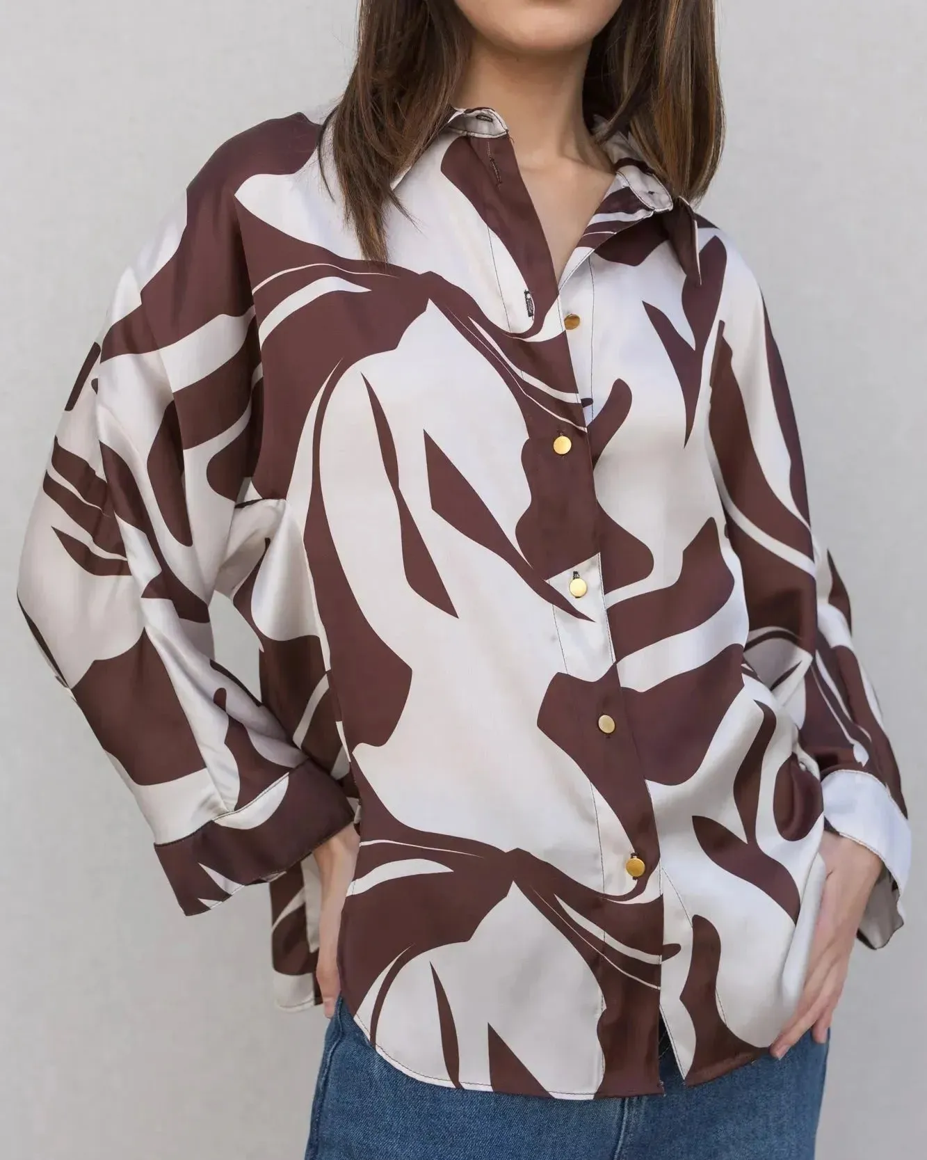Chemise Satin Femme Imprimée Motif Abstrait – Élégance et Confort pour Toutes les Occasions