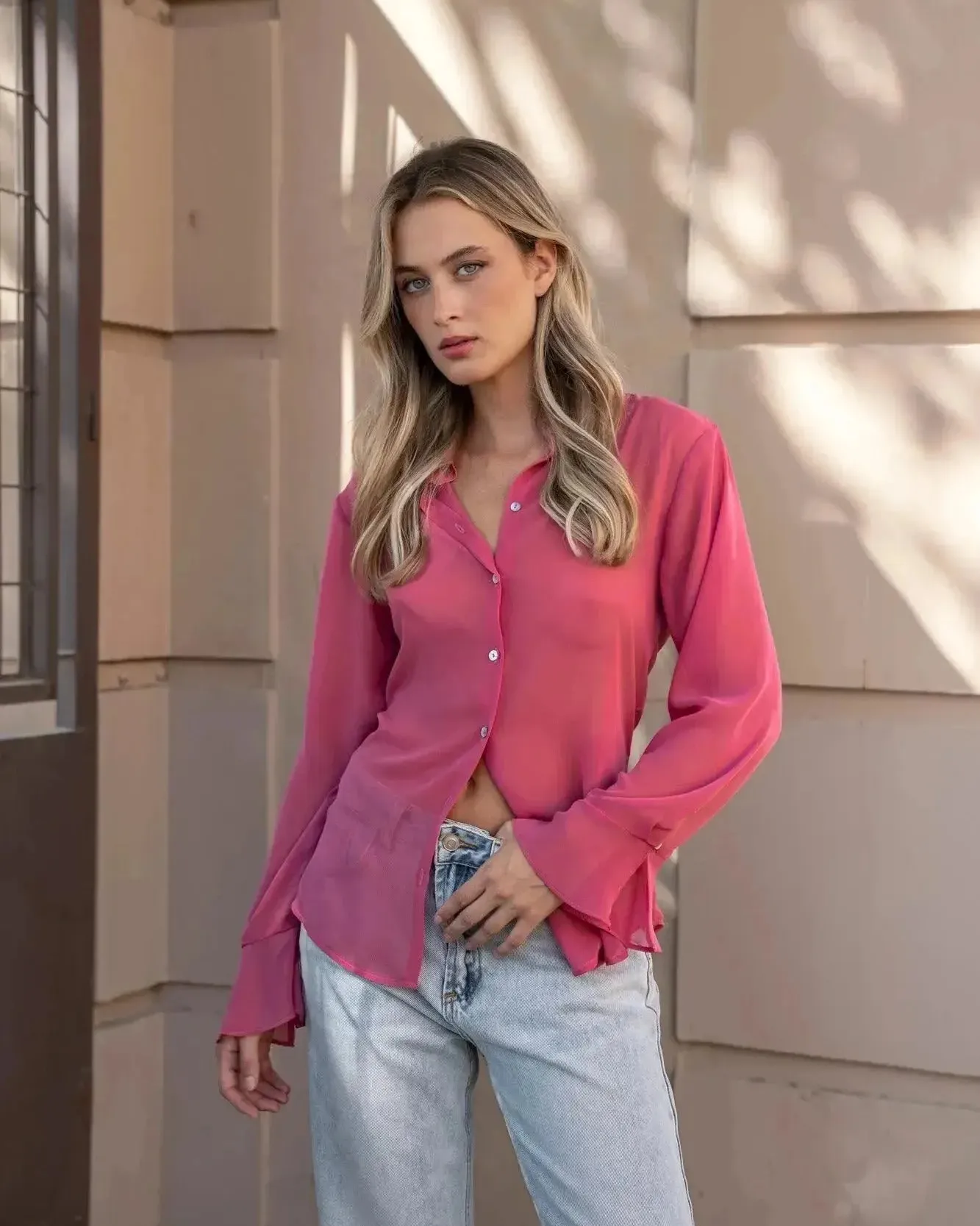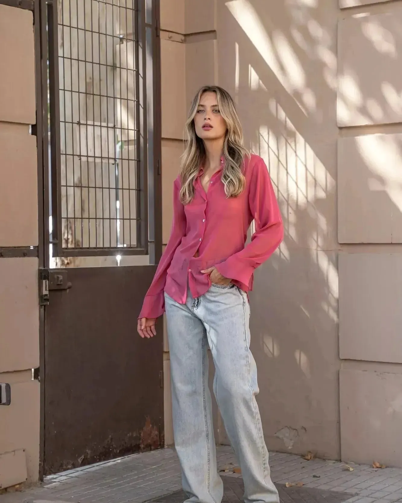 Cette chemise fluide rose est non seulement chic mais aussi incroyablement versatile. Sa légèreté permet de jouer avec les styles, la rendant parfaite pour un look décontracté ou pour une tenue plus habillée. Associez-la à un caraco nude pour un rendu élégant et discret ou portez-la avec un jean clair pour un style modeste mais tendance.