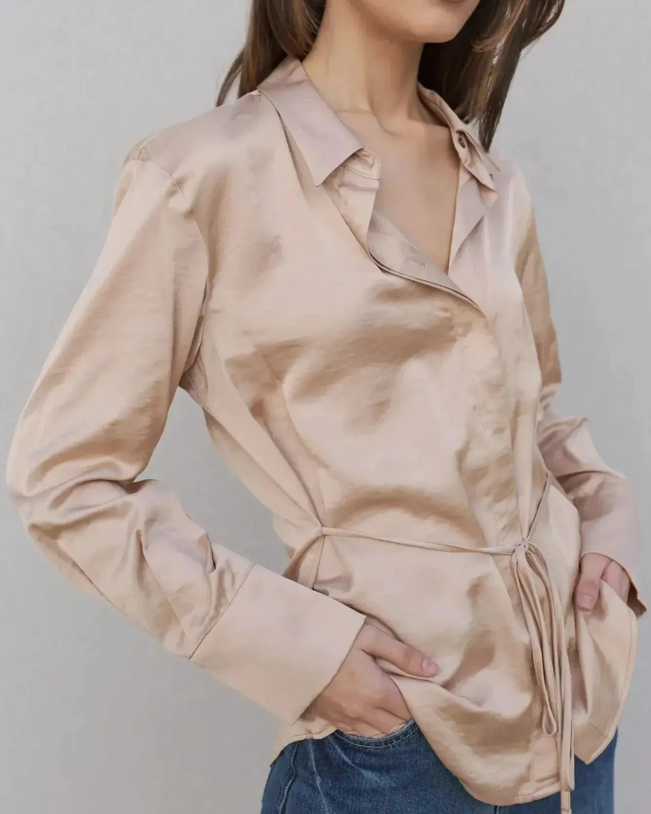 Chemisier Satin Femme Élégant Avec Toucher Luxueux Et Design Polyvalent | Sapiato