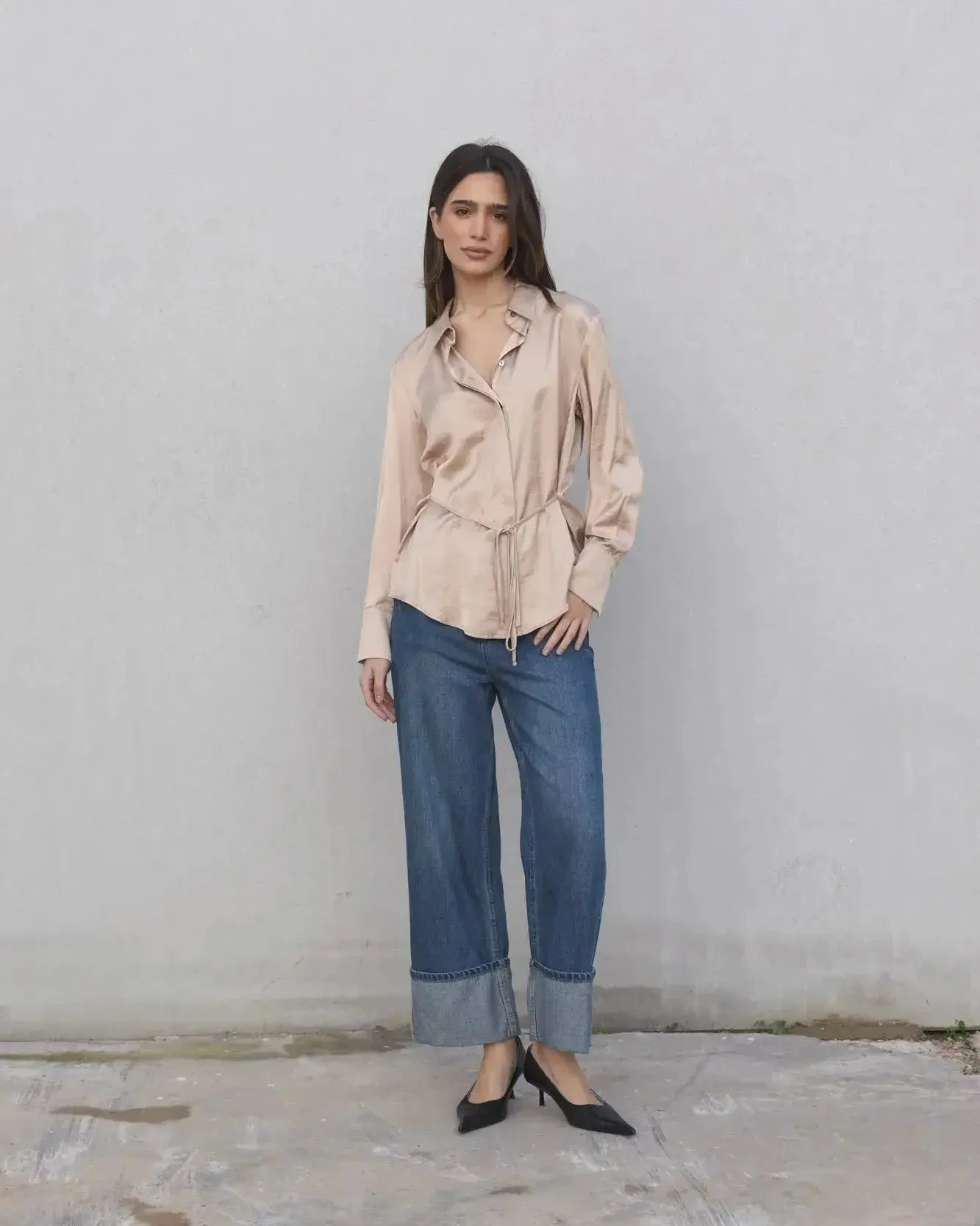 - Pour un look de jour audacieux, optez pour le chemisier avec un pantalon taille haute.