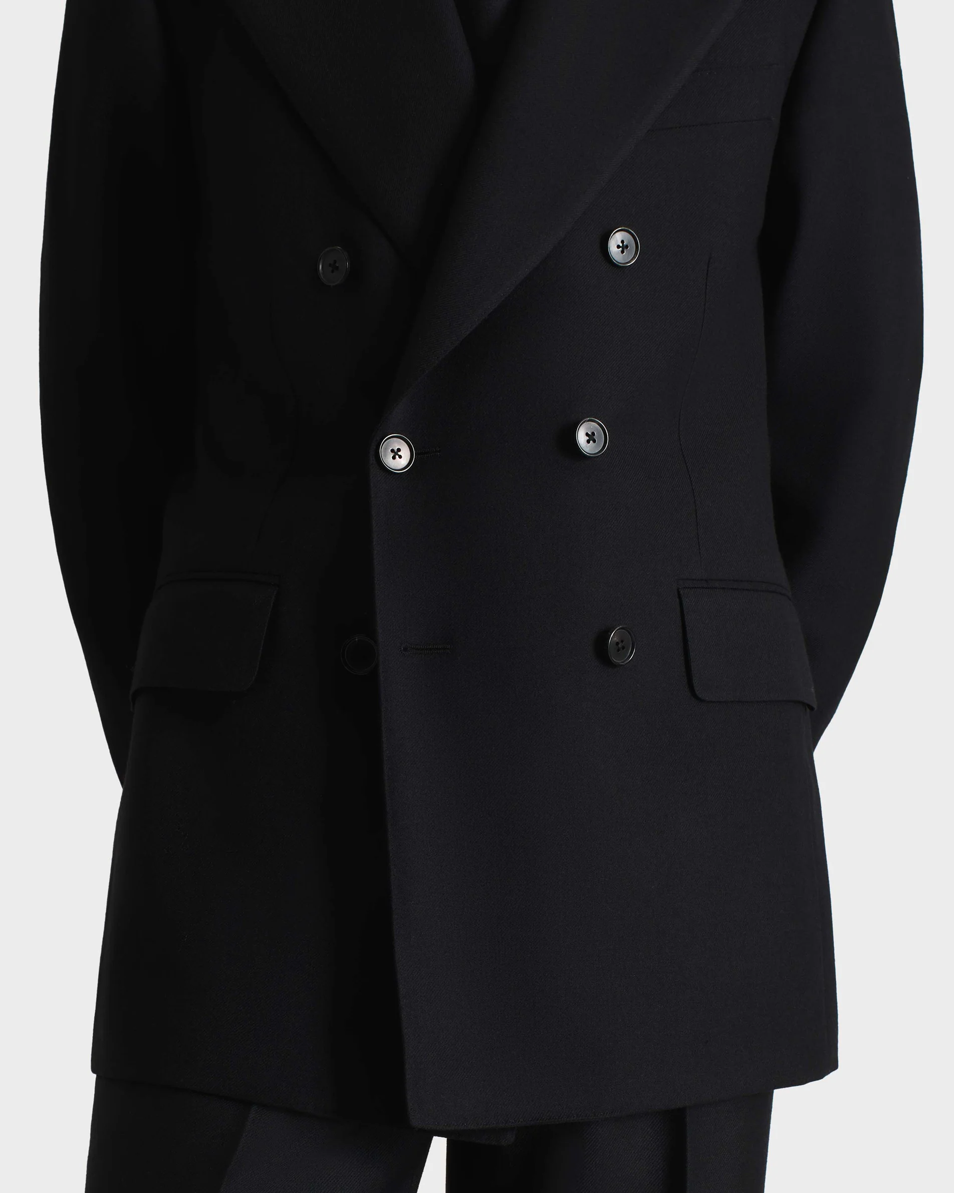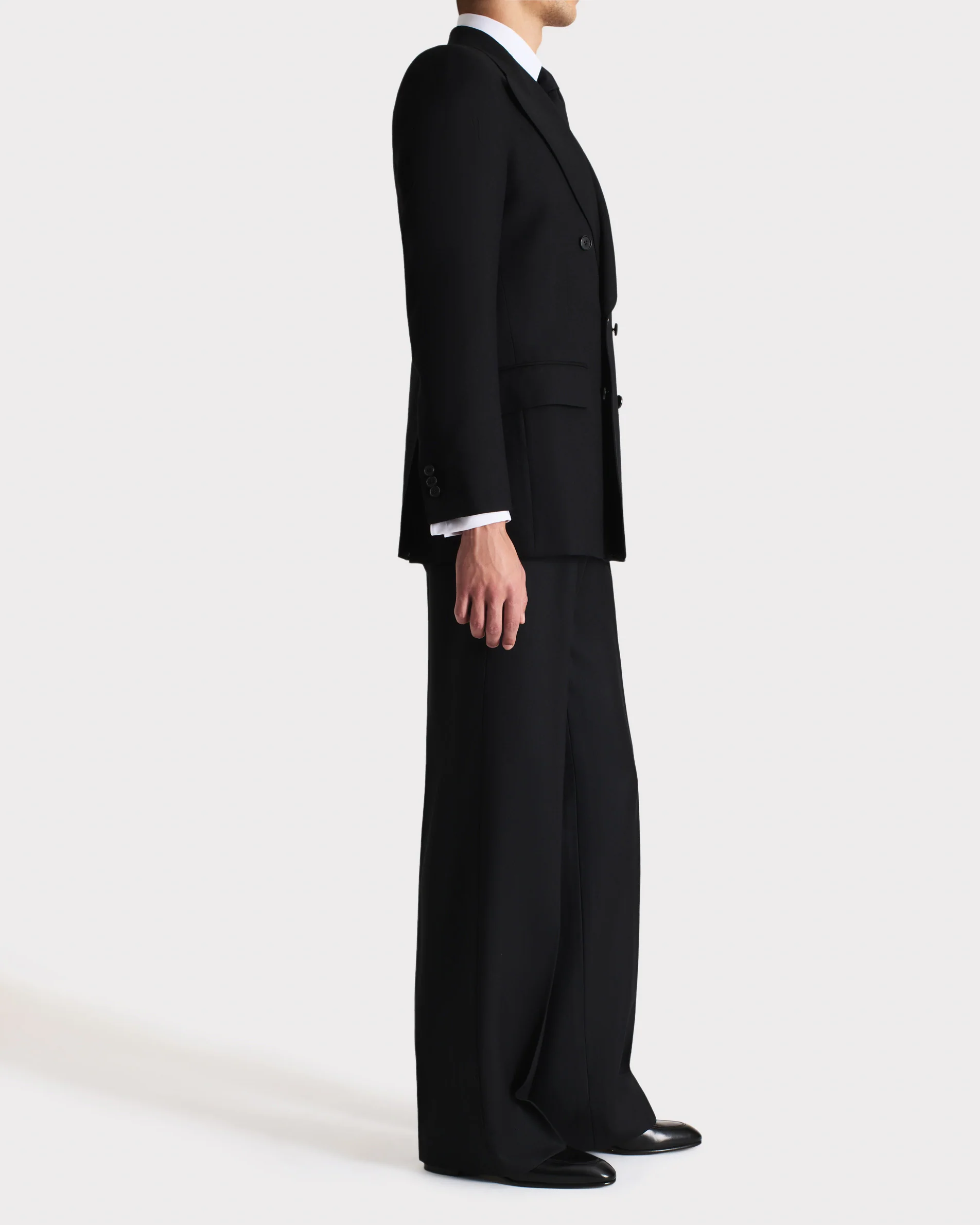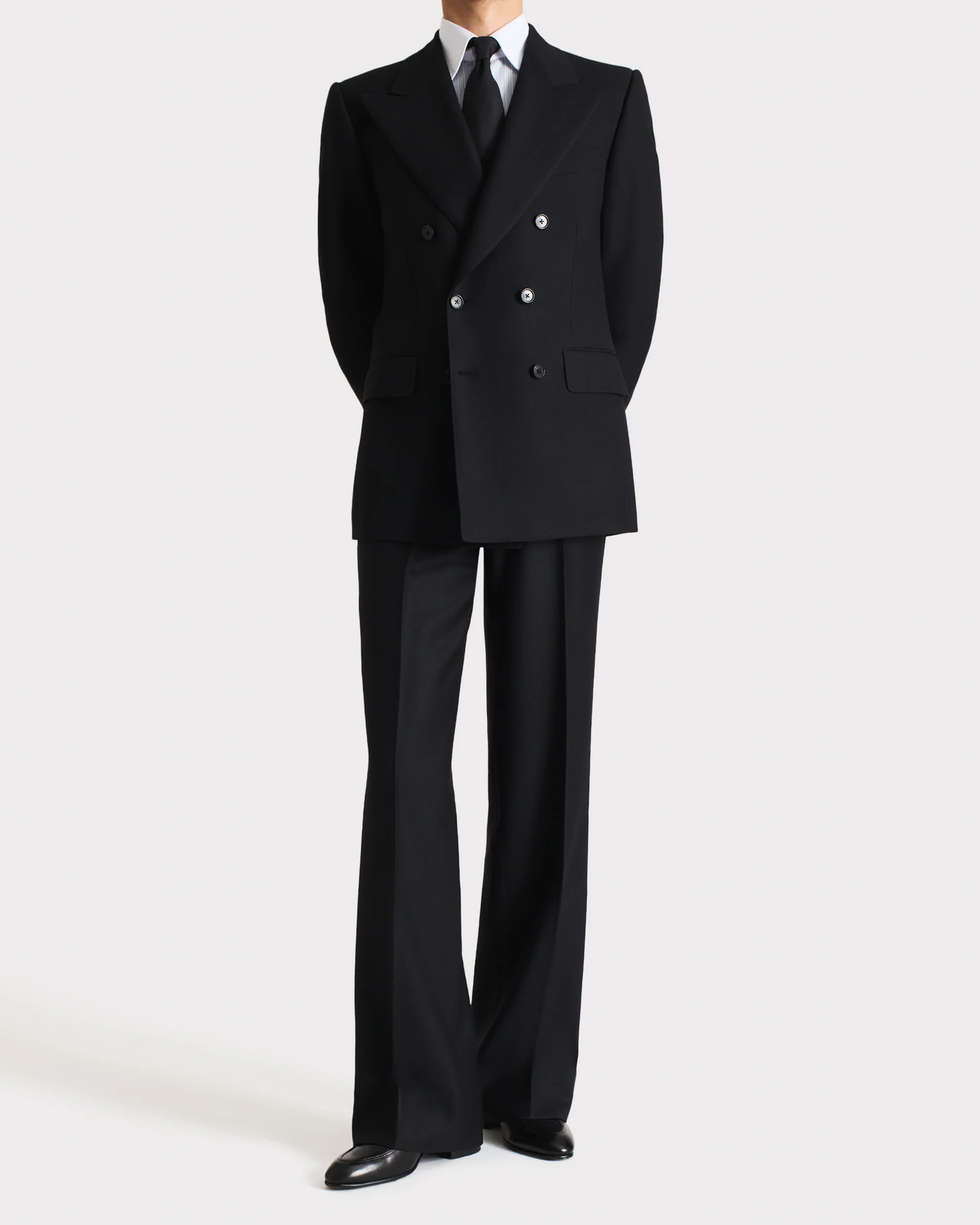 COSTUME CROISÉ EN SERGÉ DE LAINE – NOIR