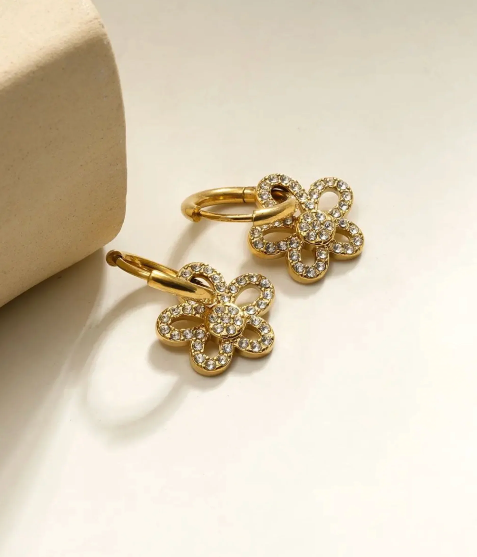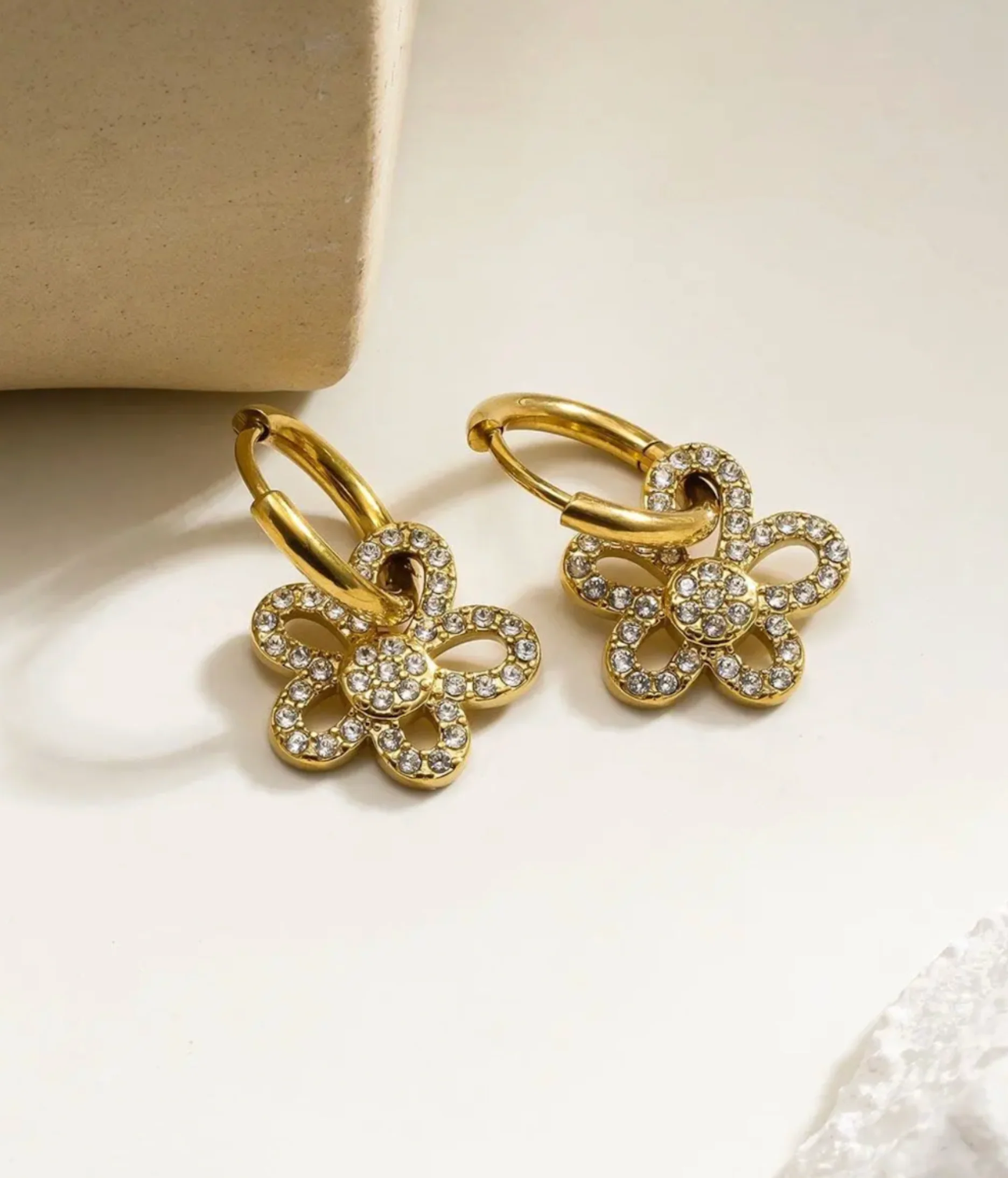 Leur format discret et leur finition soignée en font un bijou passe-partout, à porter en toute saison. Les pétales arrondis apportent de la douceur, tandis que les strass étincelants captent la lumière, illuminant le visage sans excès.