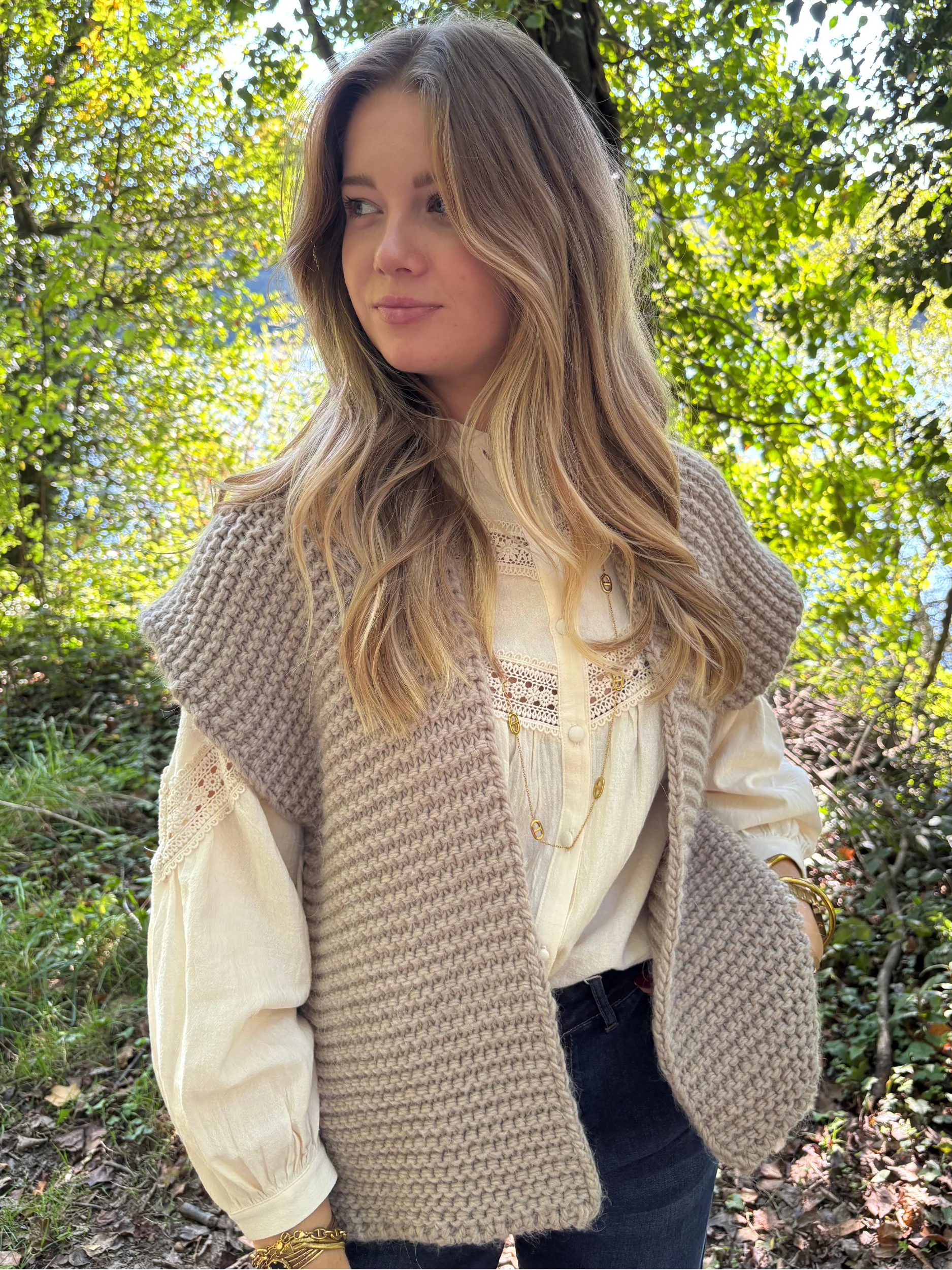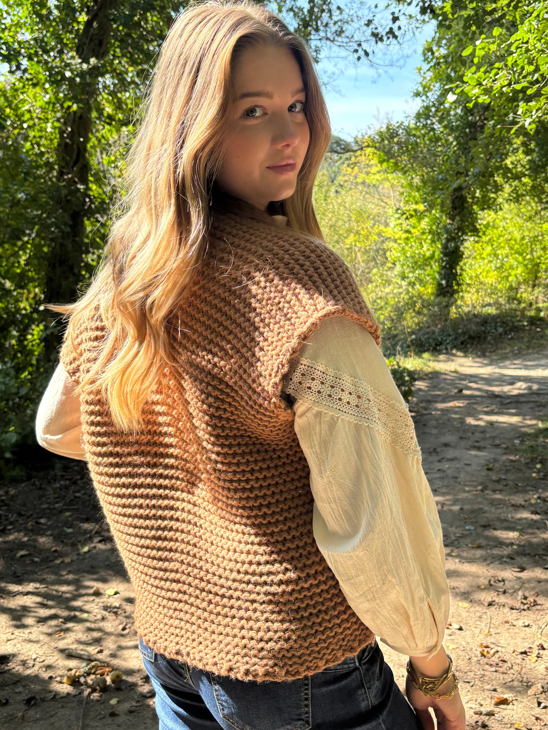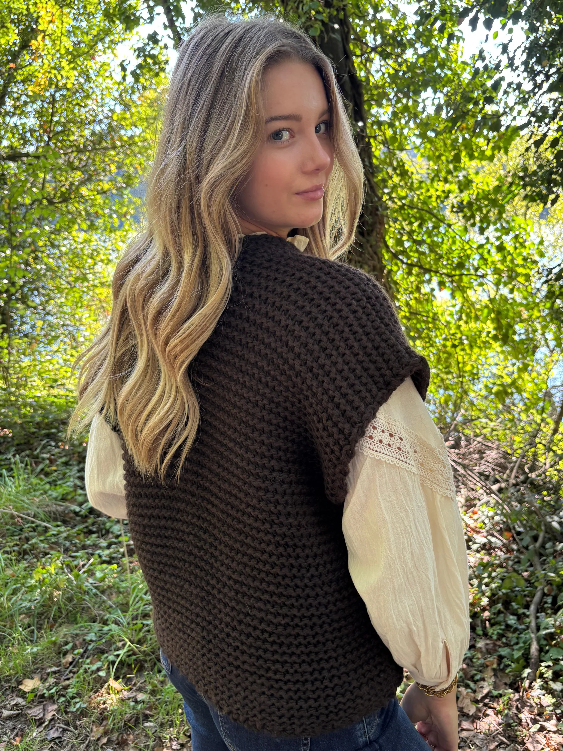 Gilet tricot sans manches bohème chic