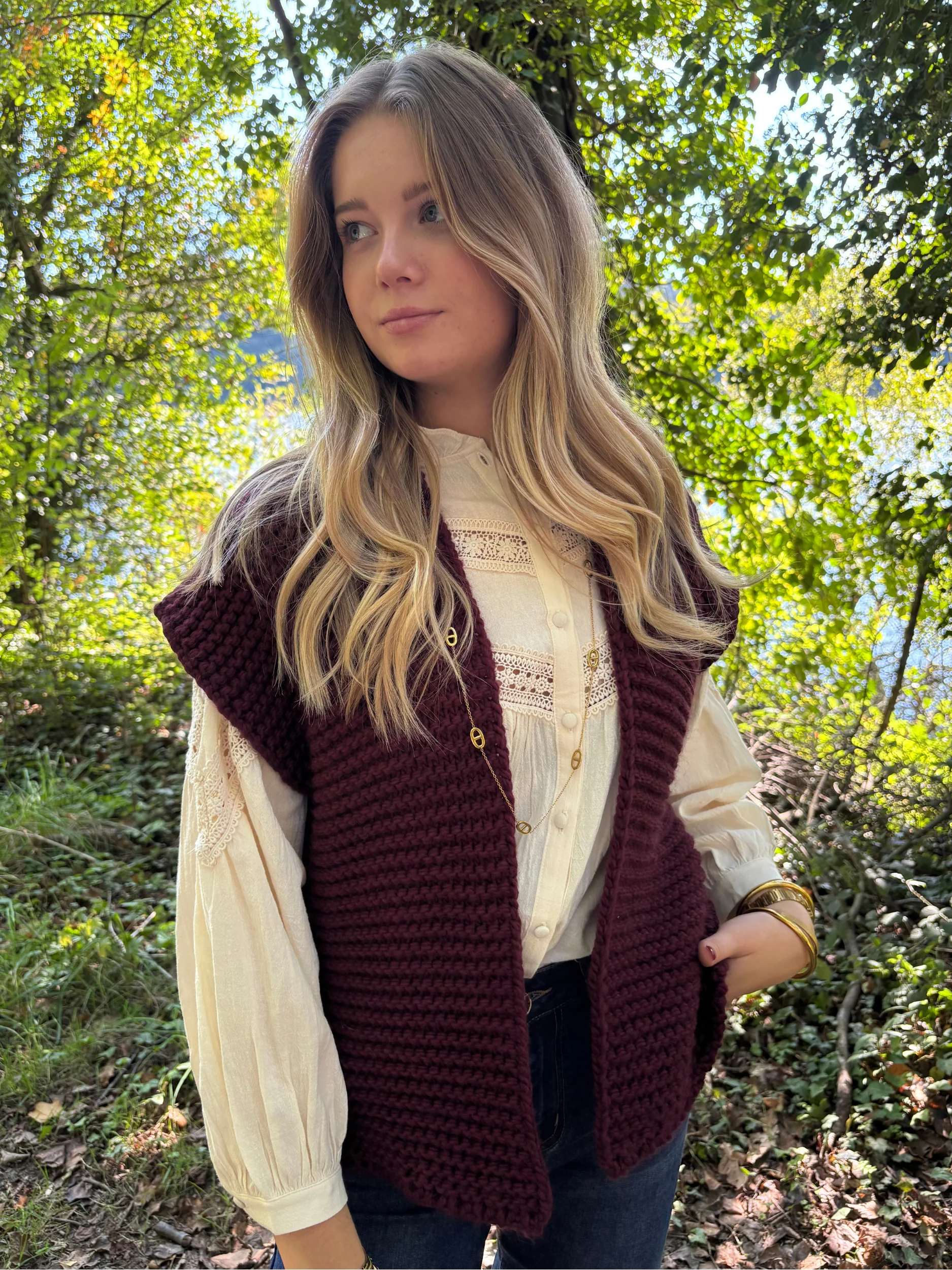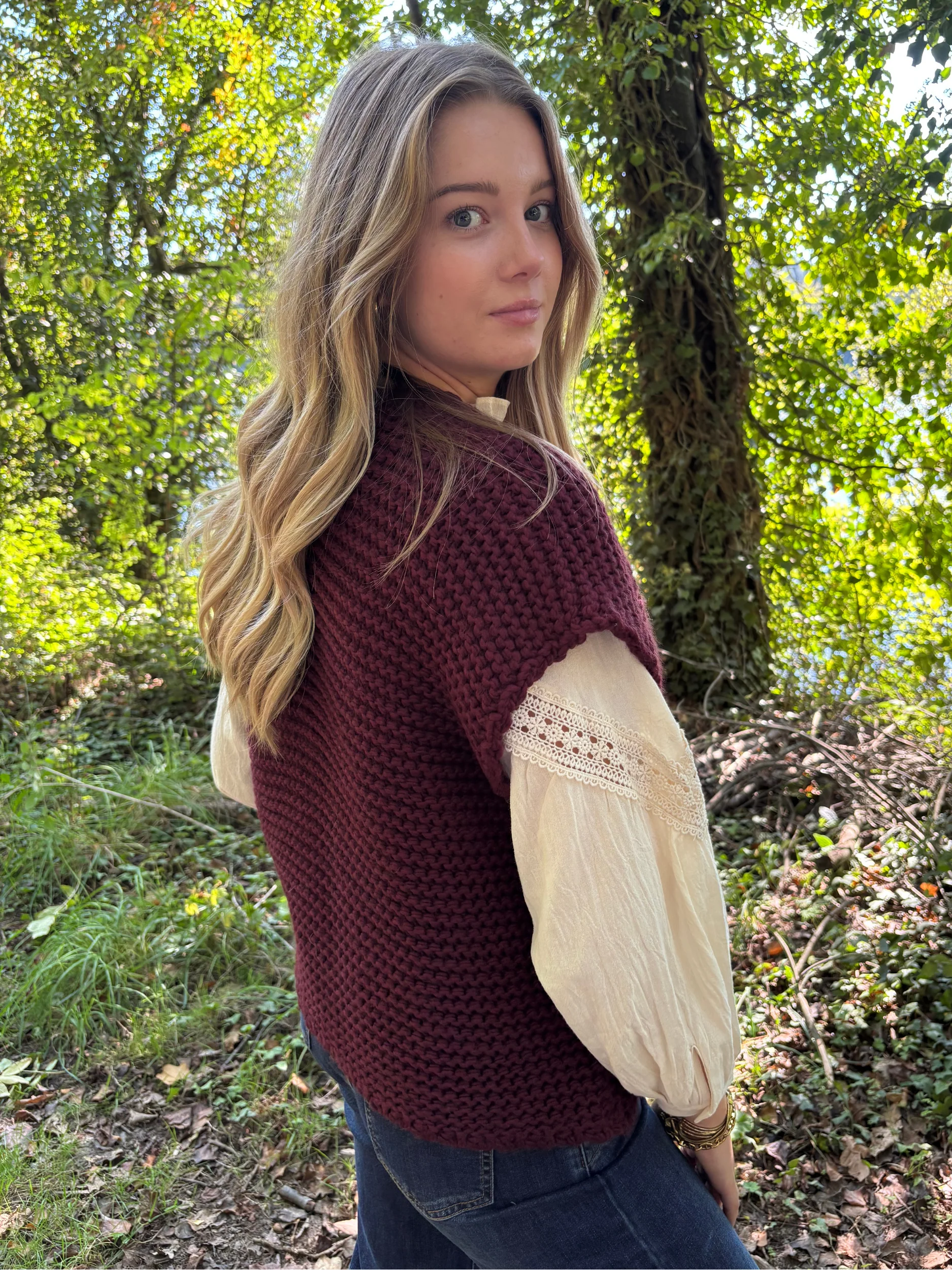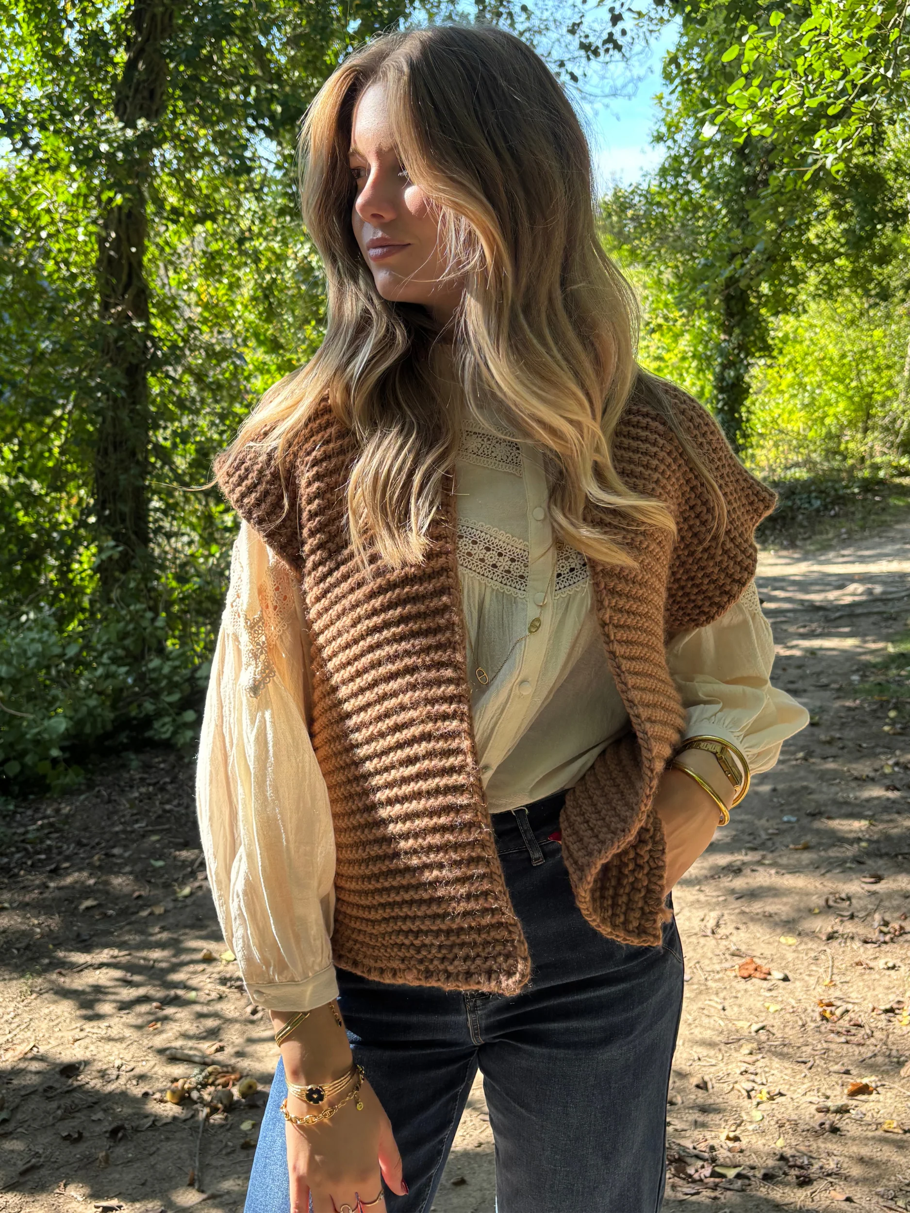 Gilet tricot sans manches bohème chic