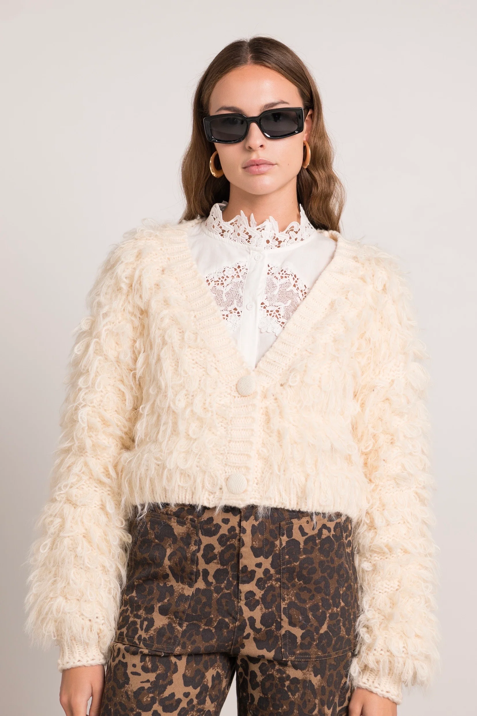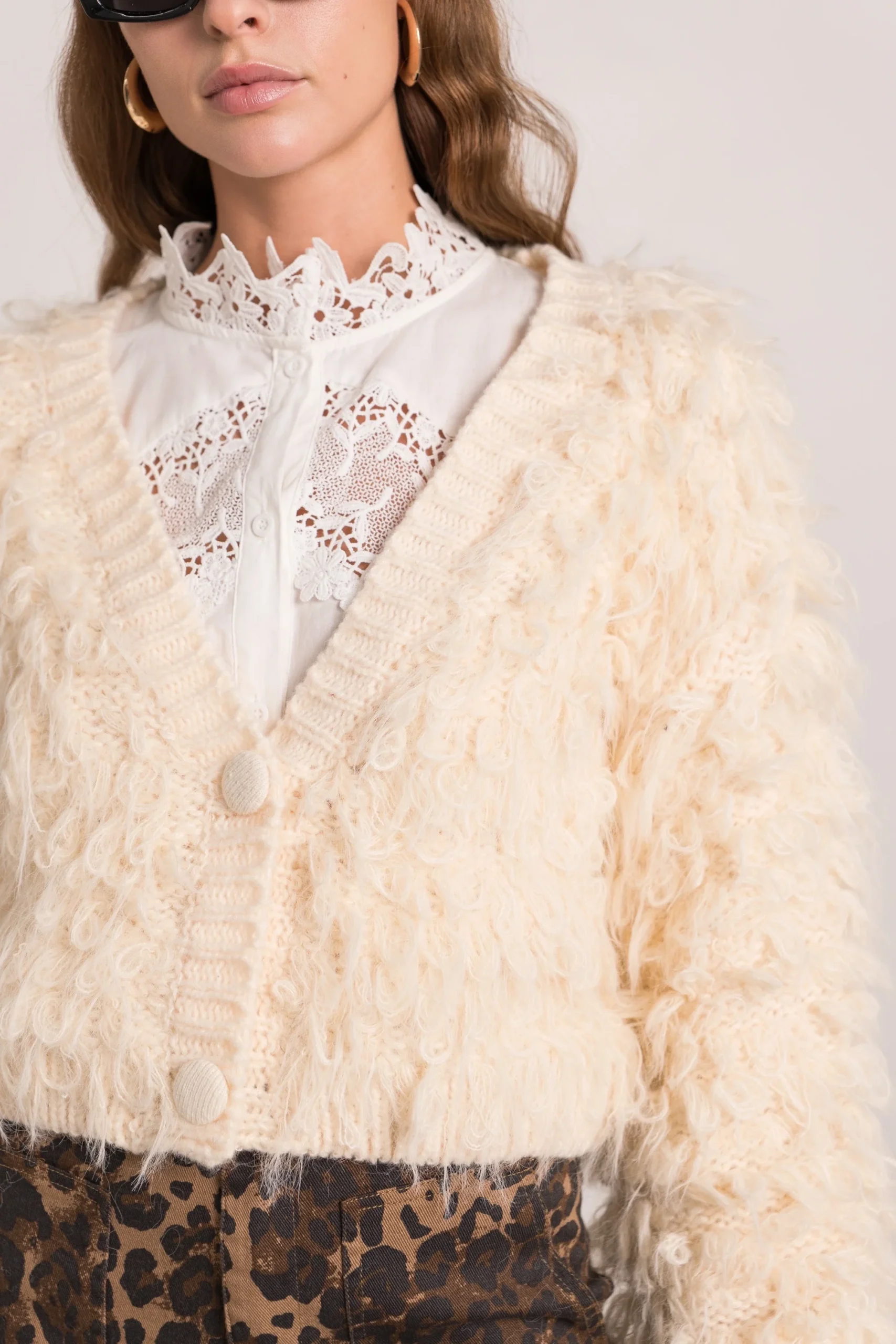 Avec ses bouclettes en relief qui apportent volume et style, et ses boutons recouverts ton sur ton, ce gilet devient une pièce forte de votre dressing bohème chic. Sa maille épaisse en fait un allié parfait pour affronter la saison automne-hiver tout en restant élégante.