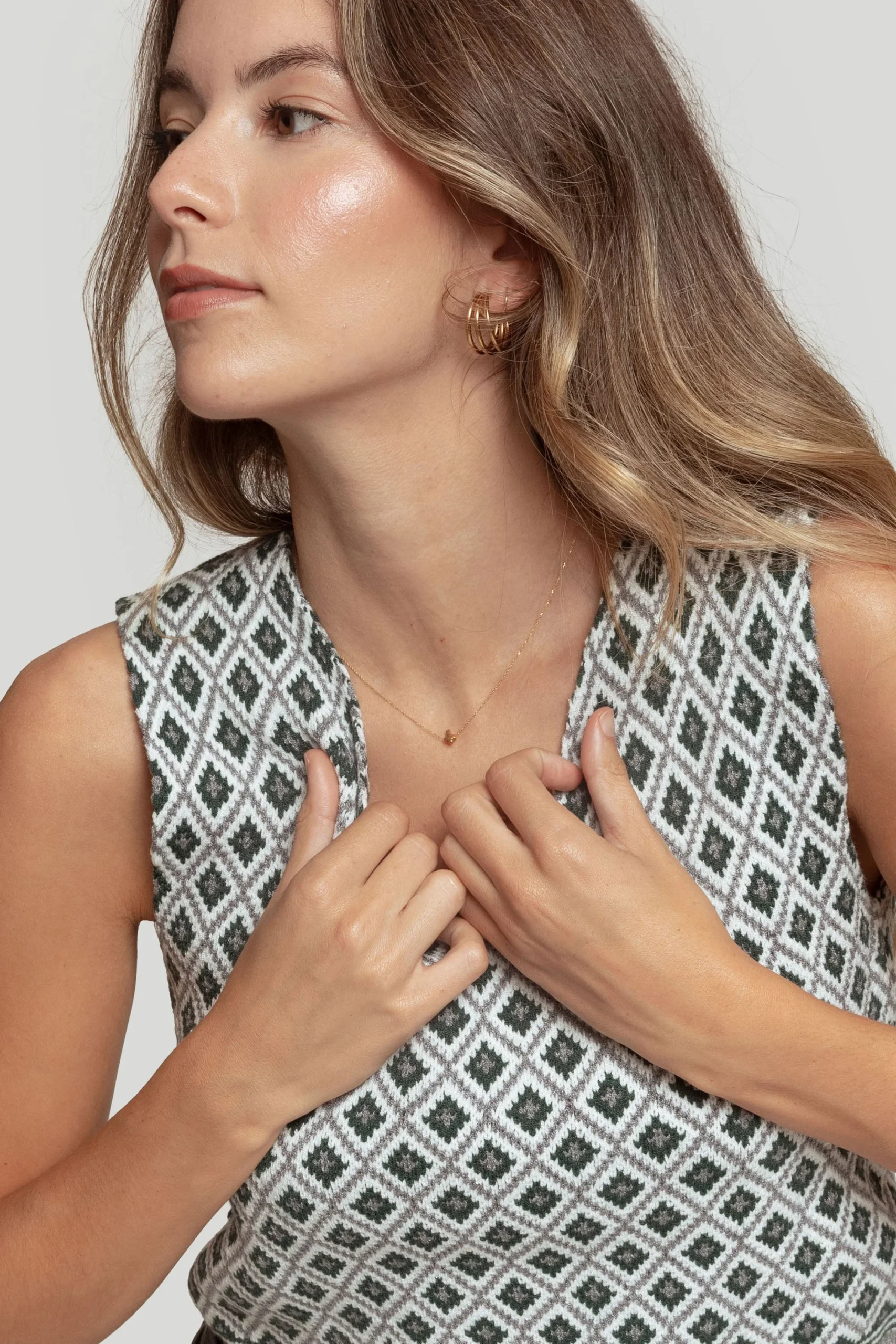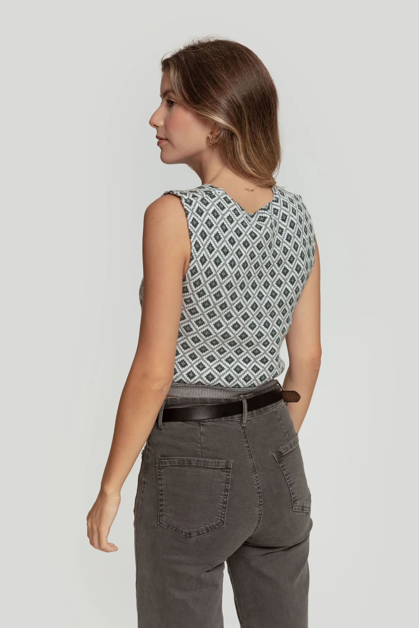 Gilet femme sans manches en maille – Motif géométrique & coupe droite élégante