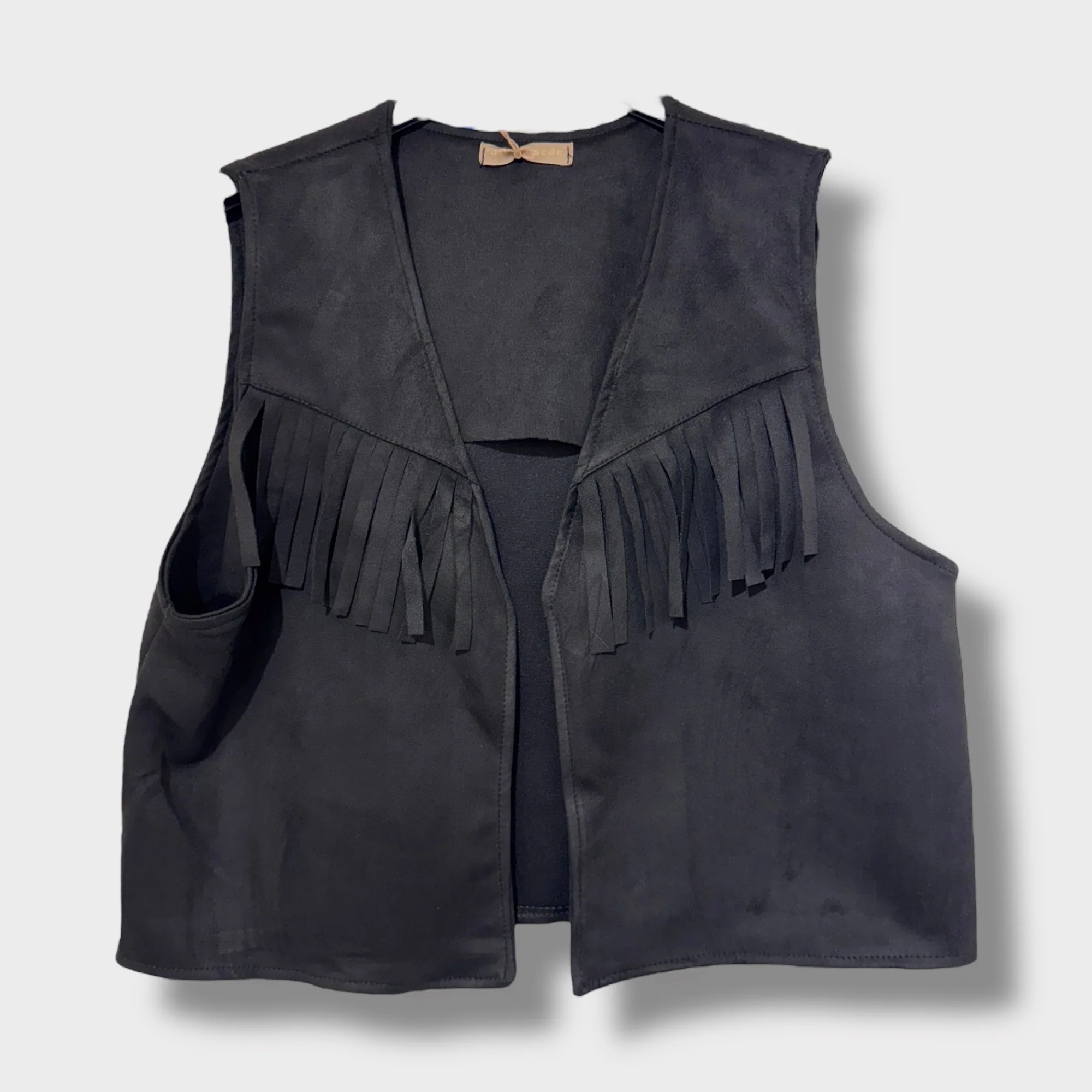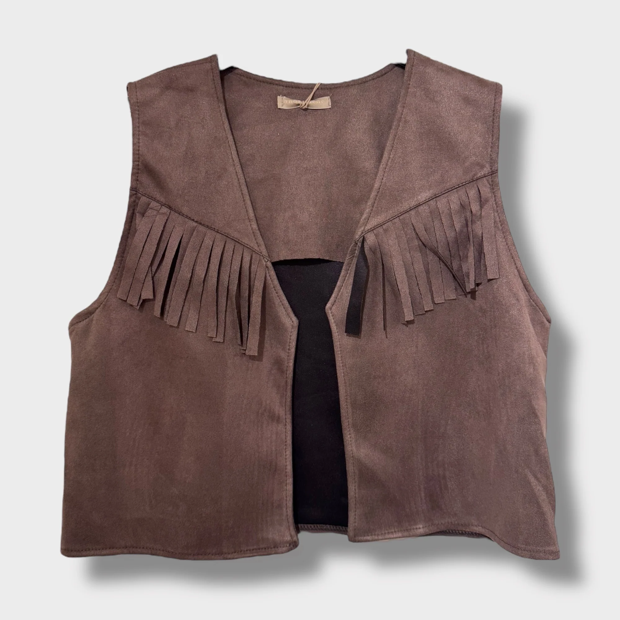 Apportez une touche rétro et western à vos tenues avec ce gilet sans manches en suédine douce, disponible en taille unique (36-42) et décliné en plusieurs coloris (noir, camel, marron et kaki). Confectionné en 95 % polyester et 5 % élasthanne, il est souple, confortable et agréable à porter.