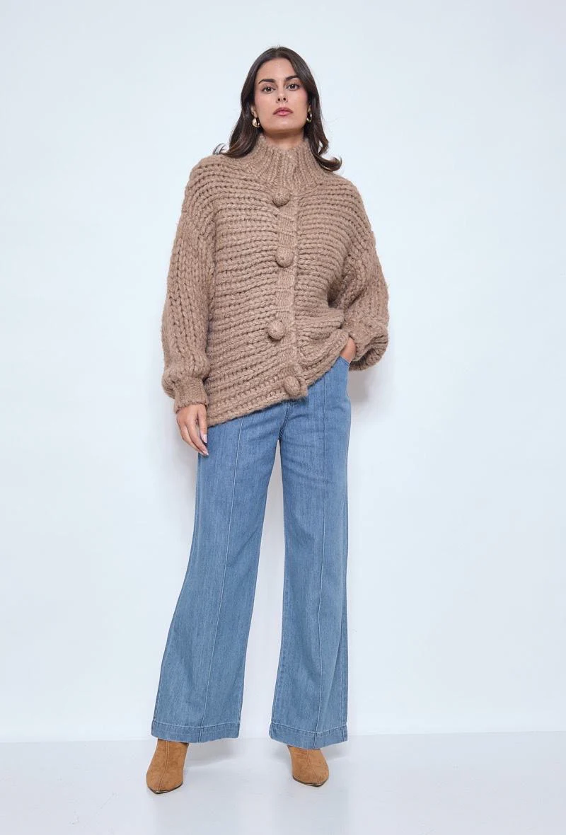 Gilet grosse maille femme – Boutons oversize