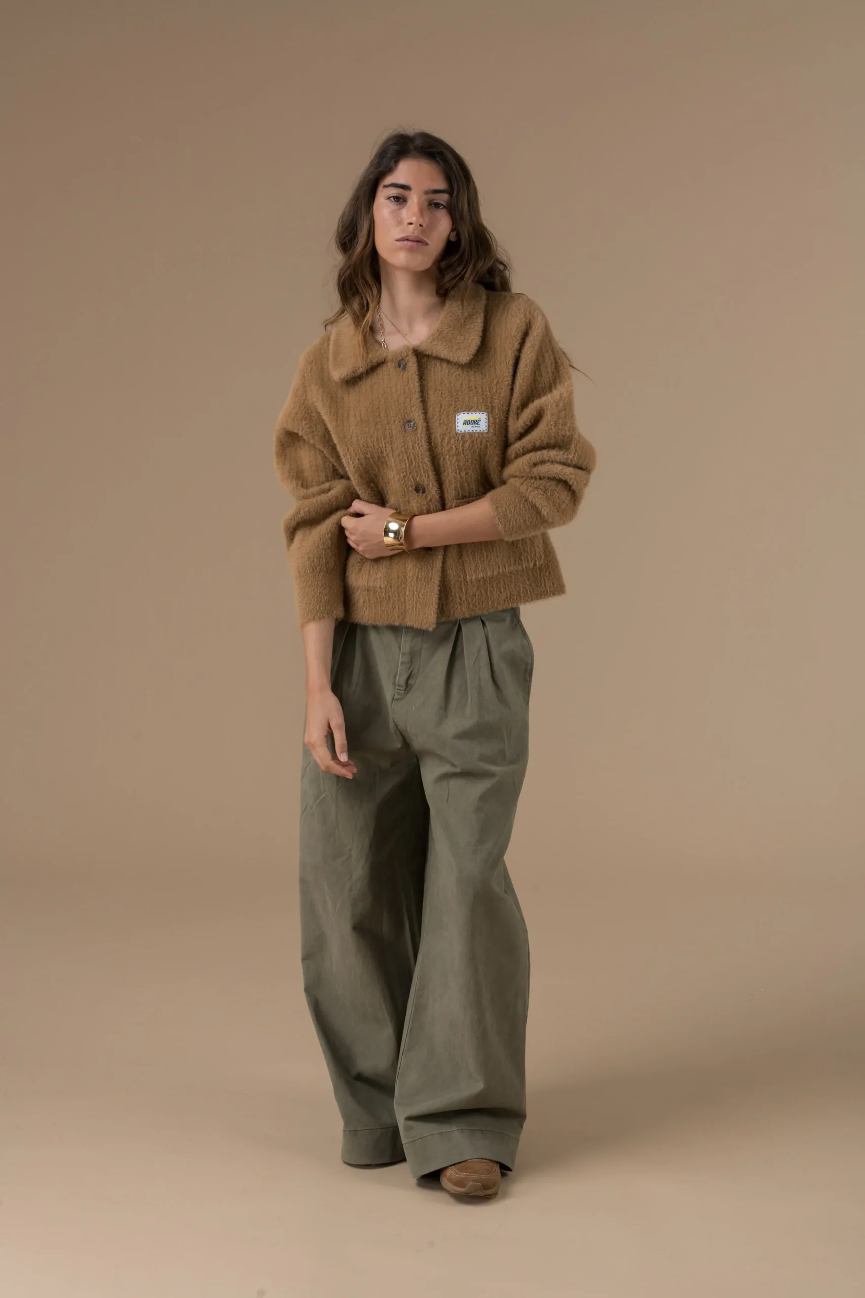 Ce gilet boutonné se porte ouvert ou fermé selon l’envie. Il se marie aussi bien à un pantalon taille haute qu’à une jupe midi fluide, pour un look féminin et actuel. Ses finitions soignées et sa teinte camel intemporelle en font une pièce maîtresse du vestiaire automnal. Disponible en tailles S/M et M/L, il offre une coupe confortable adaptée à toutes les morphologies.