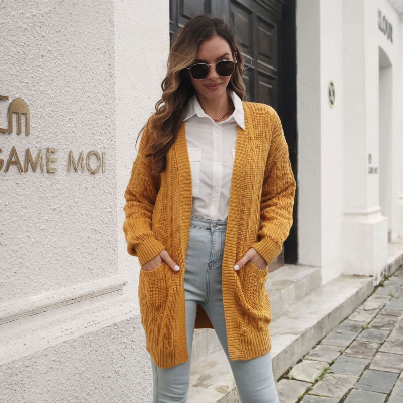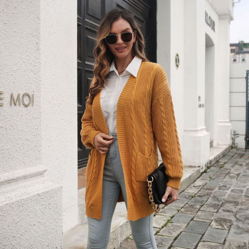 Charmant gilet long à manches longues. Existe en deux couleurs. Les poignets et le bas du gilet sont agrémentés de lignes de démarcations. Type d’article : gilet Épaisseur : épaisse Matériel : polyester / acrylique Longueur : mi-longue Coupé : ample Style : chic Un dessin léopard cette femme chic avec gilet long. Des modèles […]