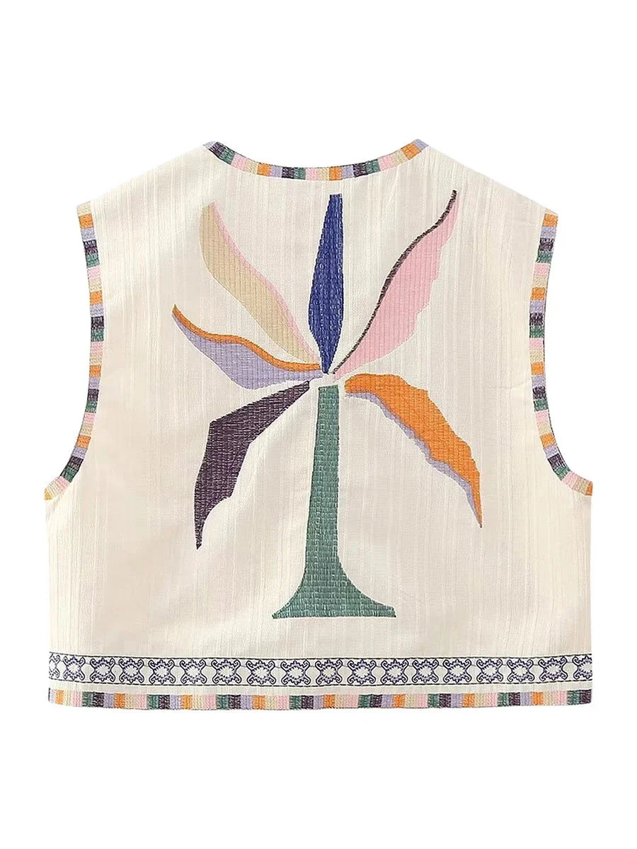 Découvrez le style unique du Gilet Sans Manche Fleuri, parfait pour rehausser toutes vos tenues avec une touche féminine et colorée !