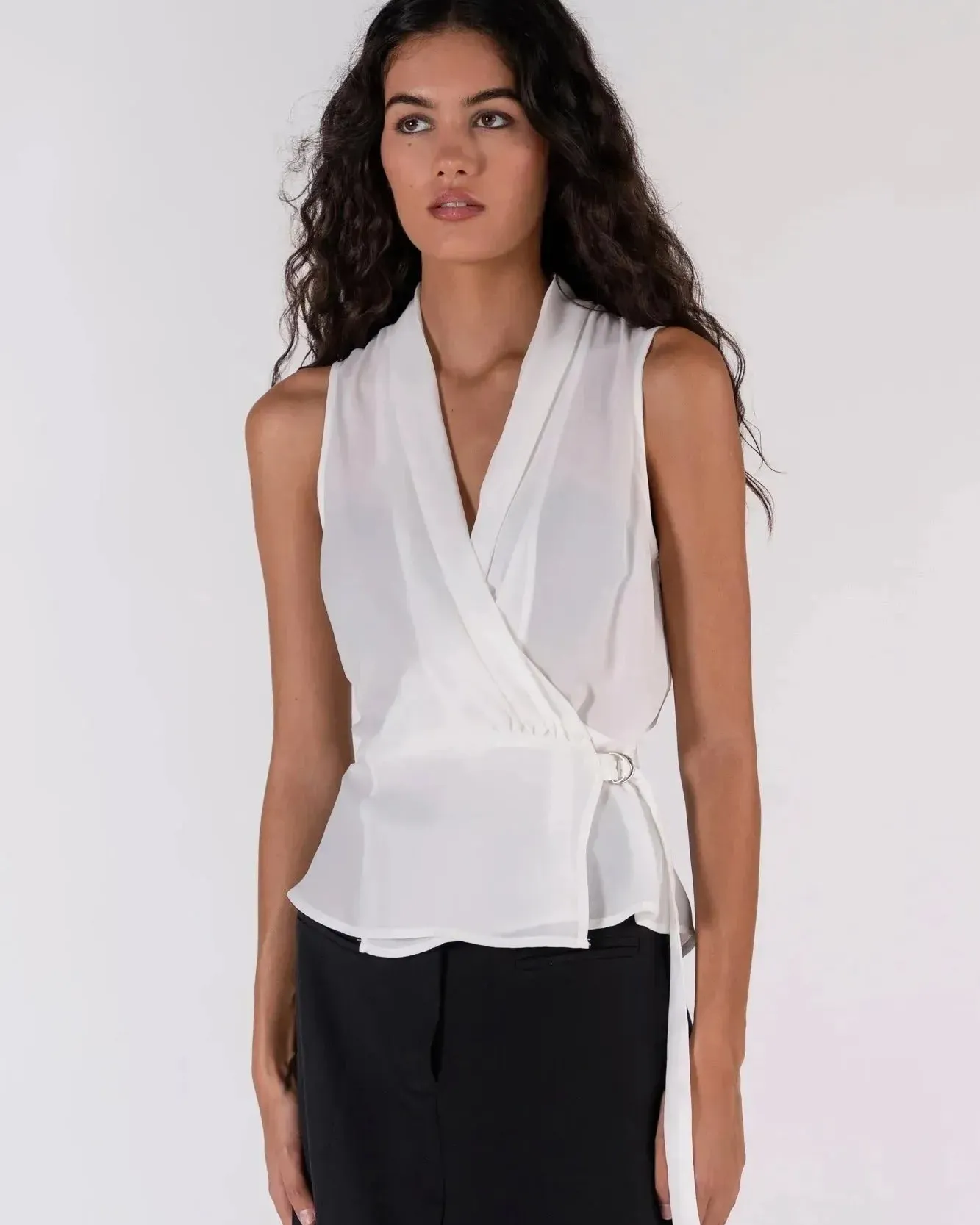 Haut Blanc Femme Croisé Sans Manches Avec Ceinture Ajustable, Chic Et Polyvalent