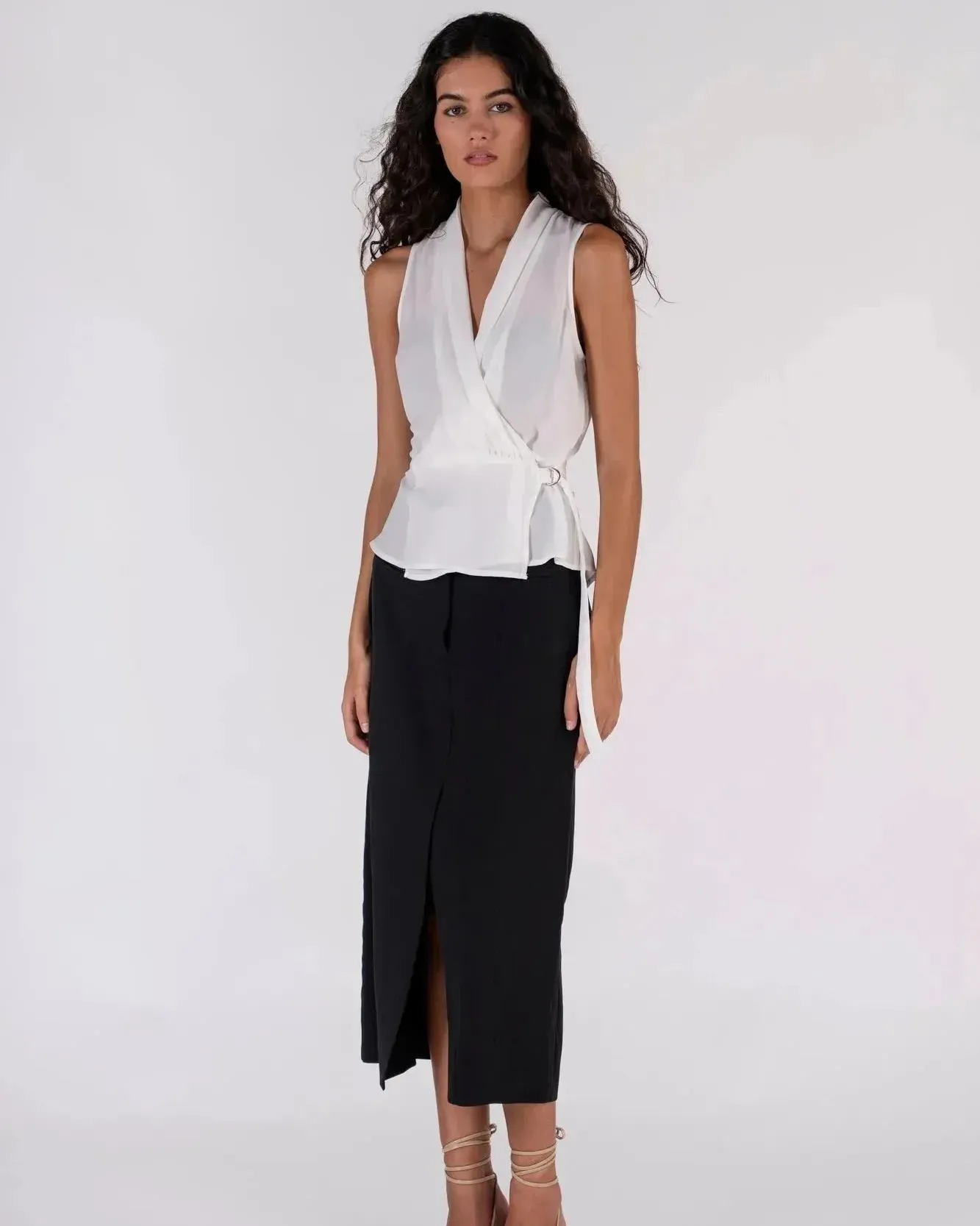 Raffiné et polyvalent, notre haut blanc femme croisé sans manches est un essentiel à avoir dans votre garde-robe. Conçu pour mettre en valeur votre silhouette, ce top en tissu fluide et léger offre une coupe ajustée à la taille avec une ceinture à nouer, idéale pour souligner la taille tout en conservant un look chic. Que ce soit pour une sortie entre amis ou une journée au bureau, ce haut s’adapte à toutes les occasions.