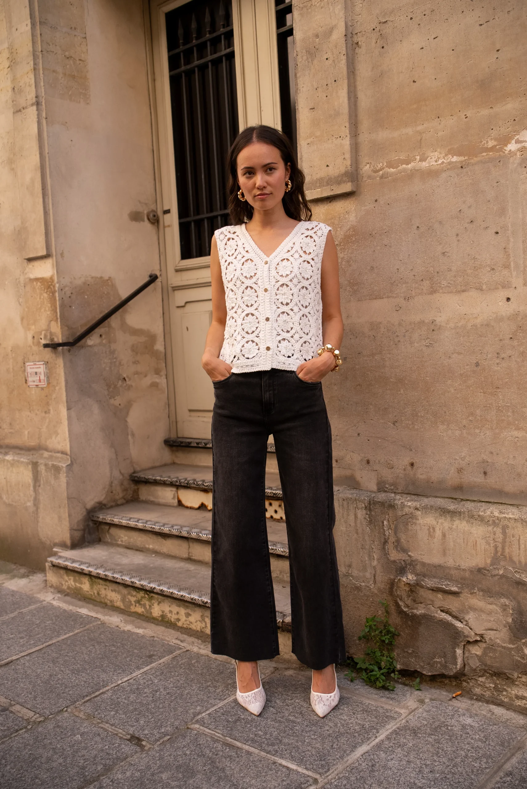 Polyvalent, ce jean flare peut se porter avec des baskets pour un style casual ou avec des escarpins pour une allure élégante. Associez-le à une chemise bohème chic ou un top féminin pour créer des tenues variées, du bureau aux sorties en ville.