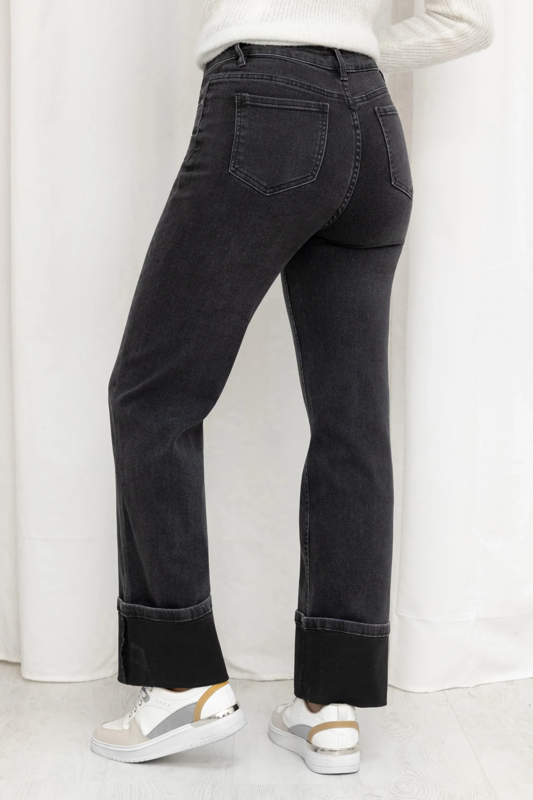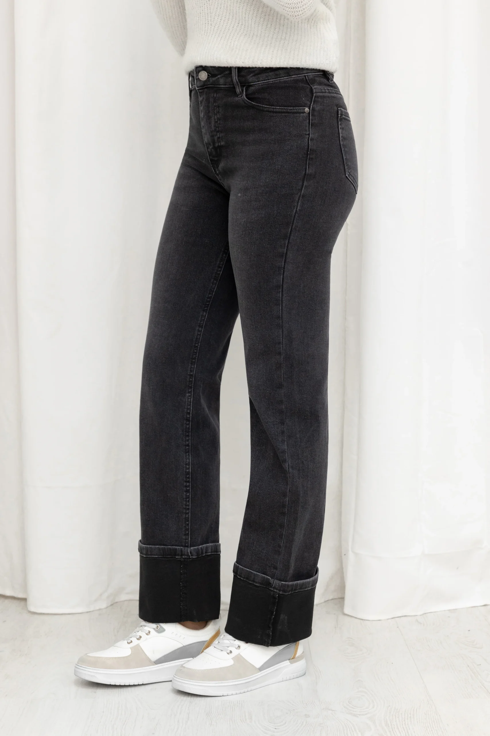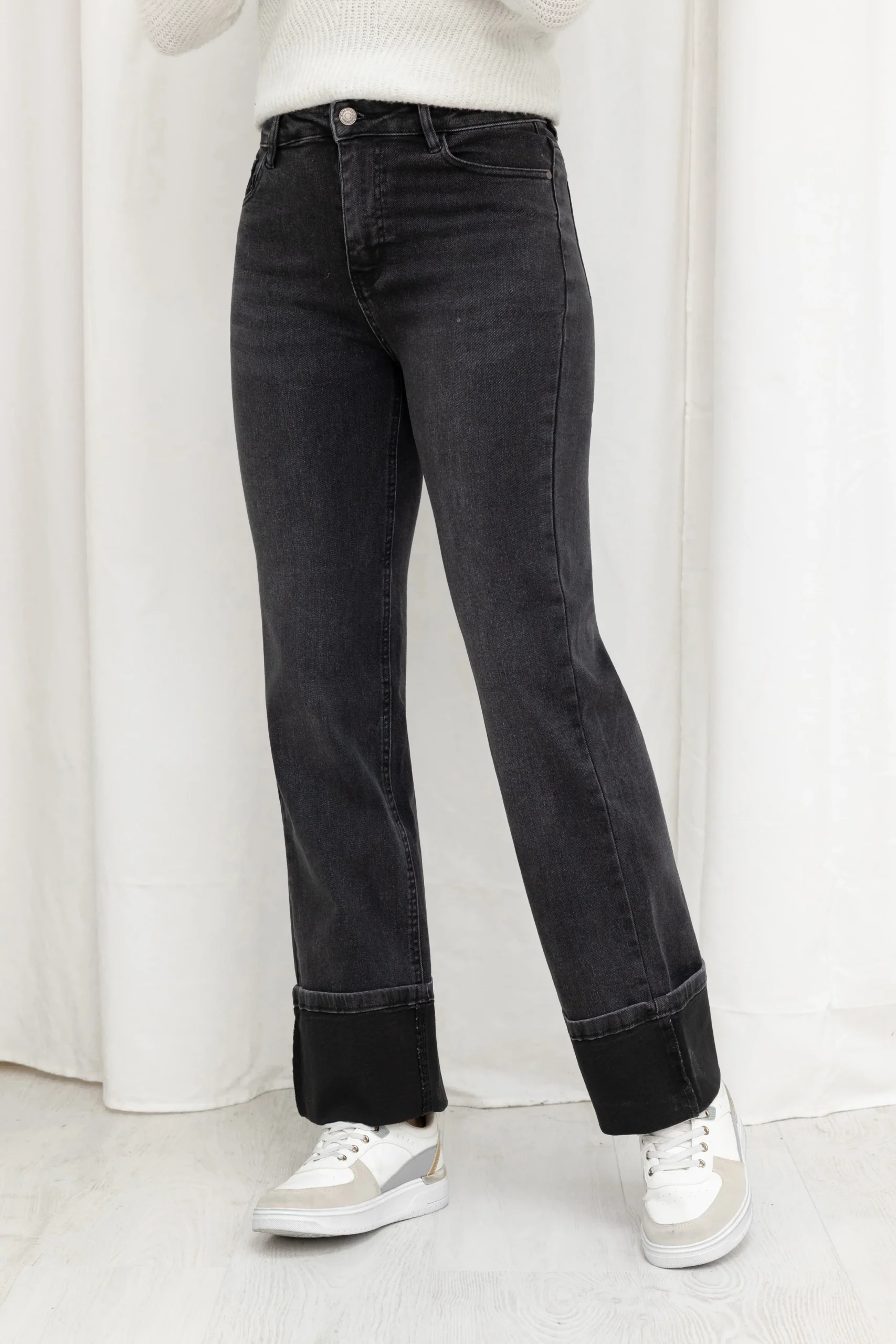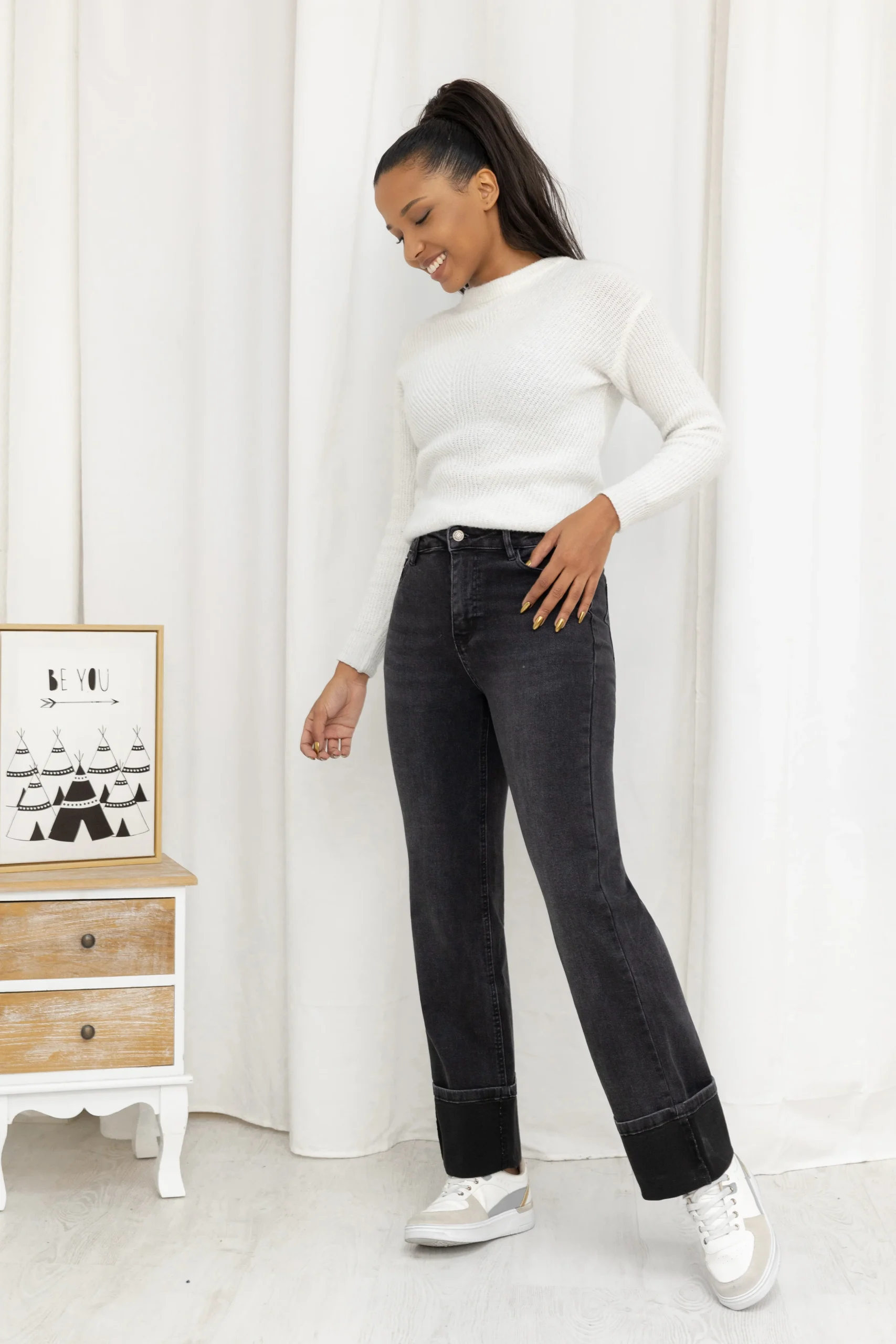 Doté d’une taille mi-haute et d’un revers contrasté en bas de jambe, ce jean se distingue par son style contemporain. Il conserve tous les codes du denim classique avec ses poches avant et arrière et sa fermeture par bouton et zip. Sa touche stretch assure confort et liberté de mouvement, idéal pour un usage quotidien.