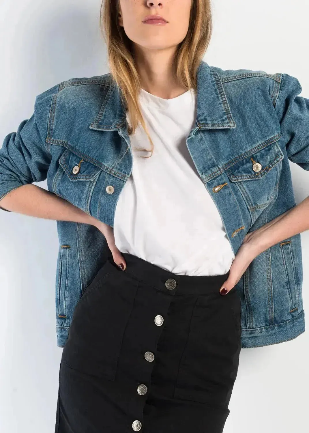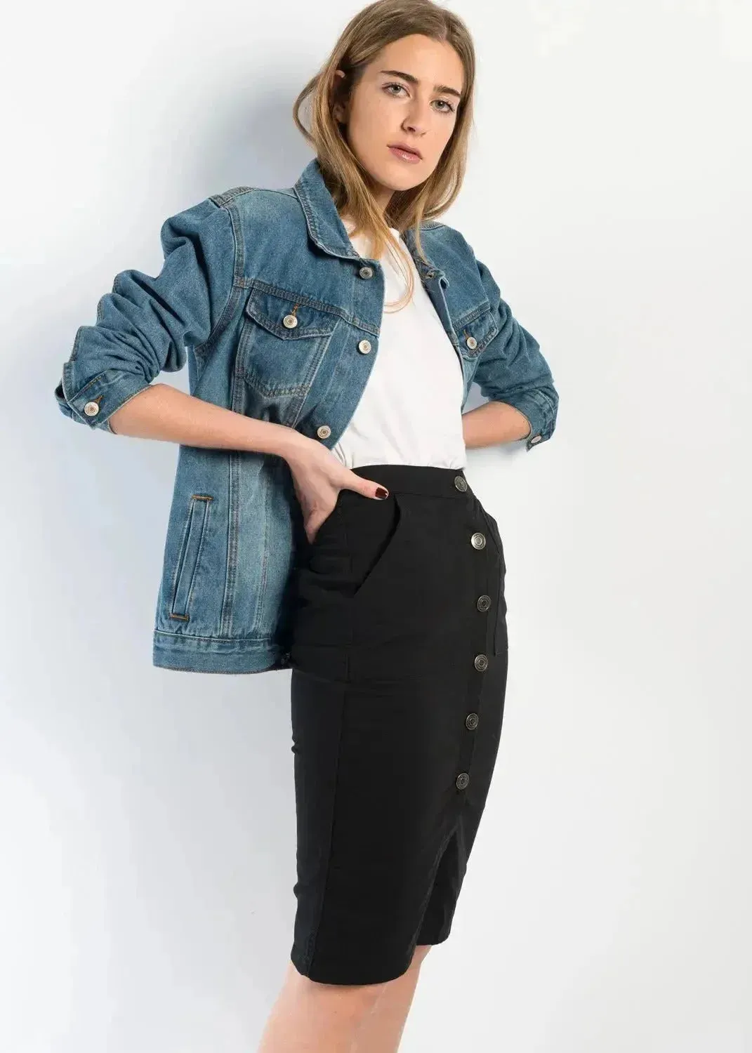- Matériau de qualité : Le denim robuste assure la durabilité de votre jupe.